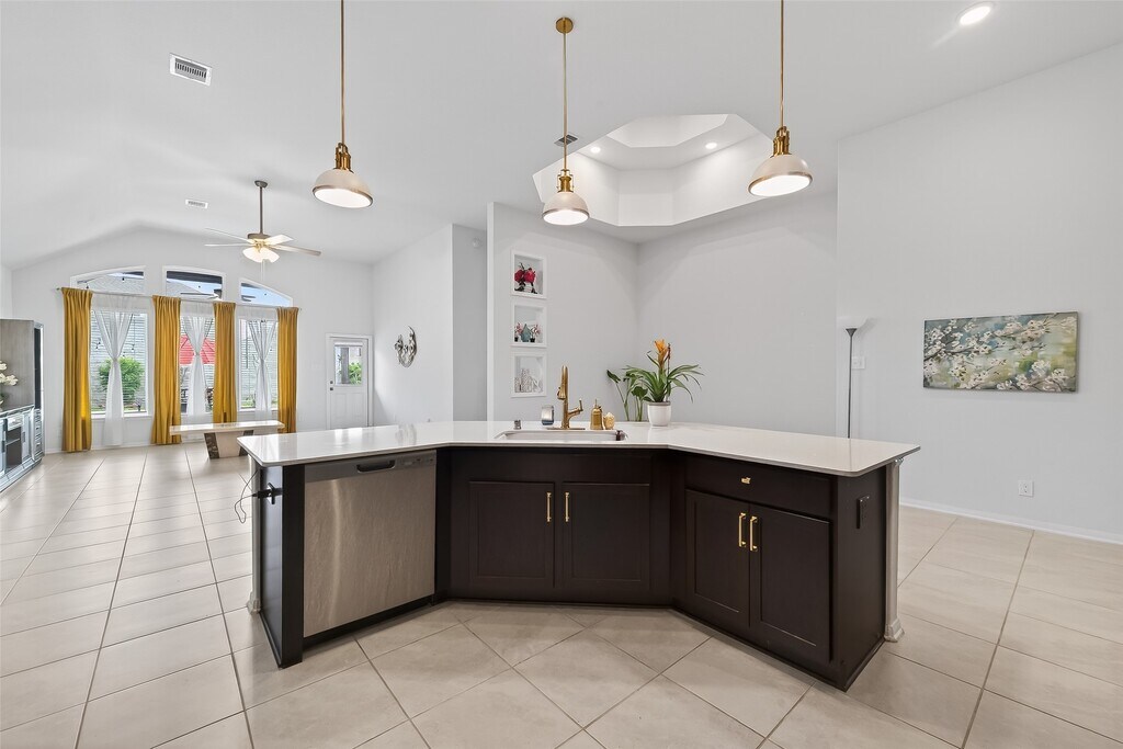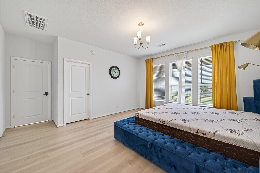 Spacious single-story 4-bedroom,3-bath home with elegant brick and stone curb appeal. This bright open layout features two bedrooms at the front sharing a full bath—ideal for family,guests,or a home office. The home opens to a large living area connected to the modern kitchen and formal dining space,perfect for entertaining. The kitchen offers a large island,granite countertops,stainless steel appliances,and abundant cabinet storage. REFRIGERATOR,WASHER,AND DRYER INCLUDED for your convenience. The private primary suite is located at the back with backyard views,a walk-in closet,and a bath with soaking tub,separate shower,and dual sinks. An additional bedroom includes its own full bath. Enjoy a low-maintenance backyard with extended patio and secure brick fence. Move-in ready! Located in Marvida,tenants can enjoy community amenities including pools,parks,playgrounds,and walking trails. Move in ready,submit your application today. MLS# 51187243