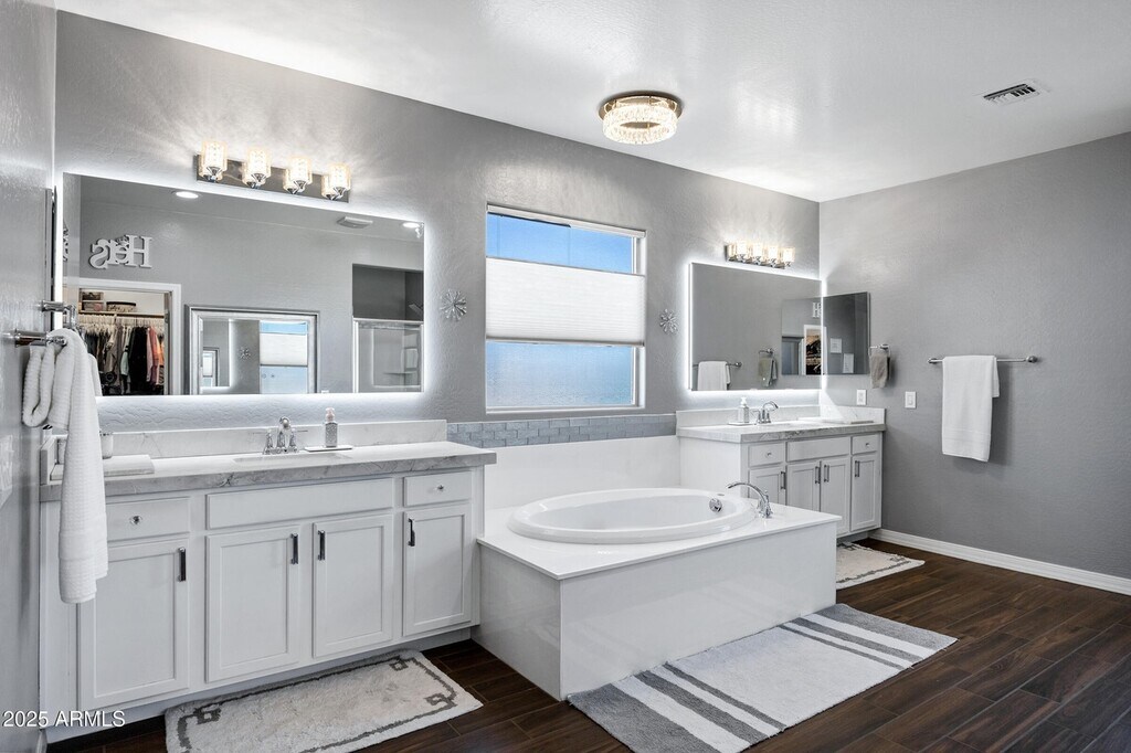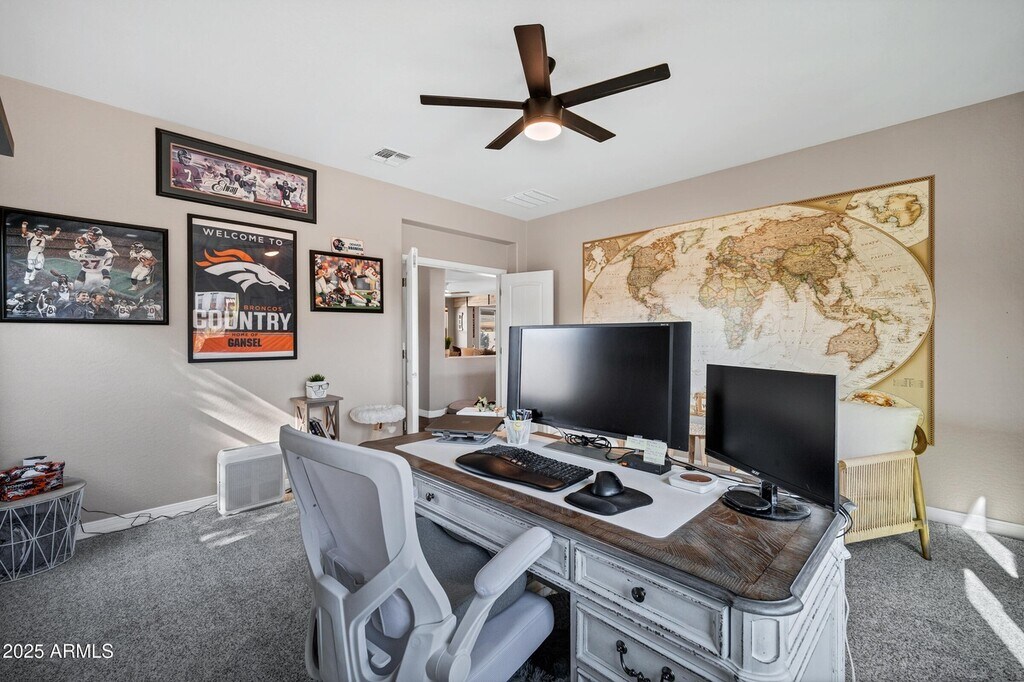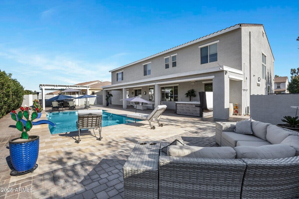 Amazing 5 bedroom, 4 bathroom + large office house with a large extended 3 car garage (220 outlet in garage that can be used for EV charging) in Queen Creek. Amenities included: central air, central heat, dishwasher, hardwood floors, dive pool (owner will maintain pool, landscaping and HOA dues), stainless steel appliance with an updated kitchen with double oven, microwave, fridge. Master bedroom has a wraparound closet, Bathrooms have all been updated, space for storage, home theatre room/loft, water softener (tenant maintains w/salt). The professional landscape backyard includes a low- Maintenace backyard which includes turf, pavers and plenty of space to entertain. Also has an RV gate which allows for additional storage for a small camper or ATV. Tenant is responsible for utilities. Is pet friendly which comes with an automatic doggy door, a non-refundable pet fee of $300, plus additional fees for multiple pets. NO SMOKING allowed inside of property!! Property in a quiet neighborhood on the end of a cul-de-sac/greenbelt and great for kids. Date Available: October 1, 2025. $5,400/month rent. $3,500 security deposit required. Please contact Cheree & Steve at to learn more. Prime location to shopping, bars, grocery stores, schools and highway.