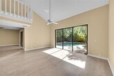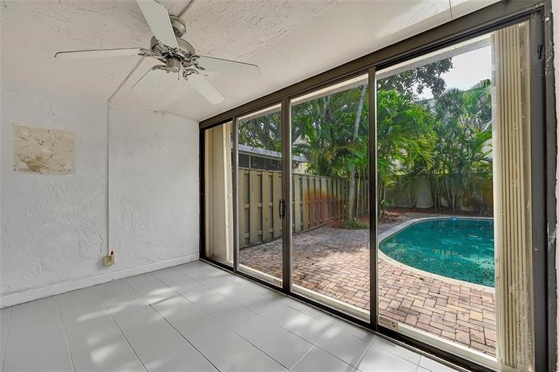 Completely updated 2BR/2BA townhouse with private pool and tropical landscaping. Features vaulted ceilings, large windows overlooking the backyard, granite counters, soft-close cabinetry, and newer stainless-steel refrigerator. Bathrooms recently updated with new vanities and flooring. One bedroom is on the ground level; the upstairs master includes an enclosed patio and walk-in closet and has new flooring. Additional highlights include laminate flooring, loft area, covered parking for two or more cars, accordion shutters, indoor and outdoor storage, and brick pavers surrounding the pool — perfect for entertaining or relaxing in your private oasis.