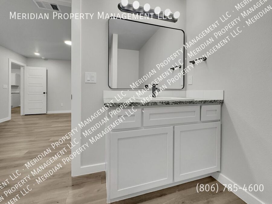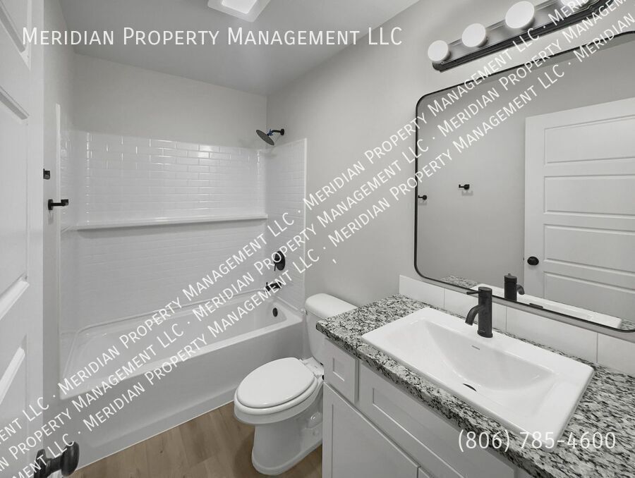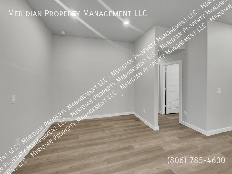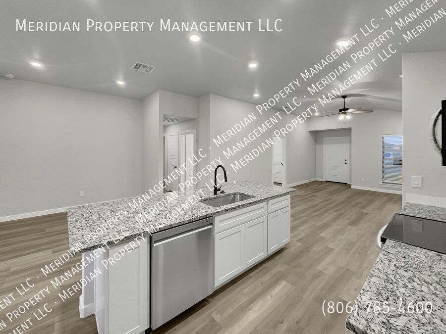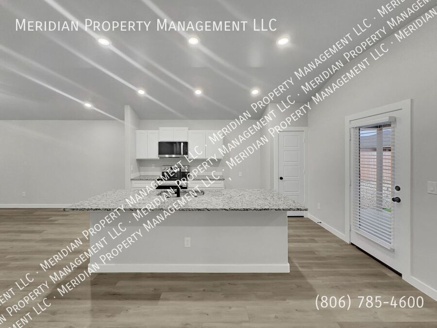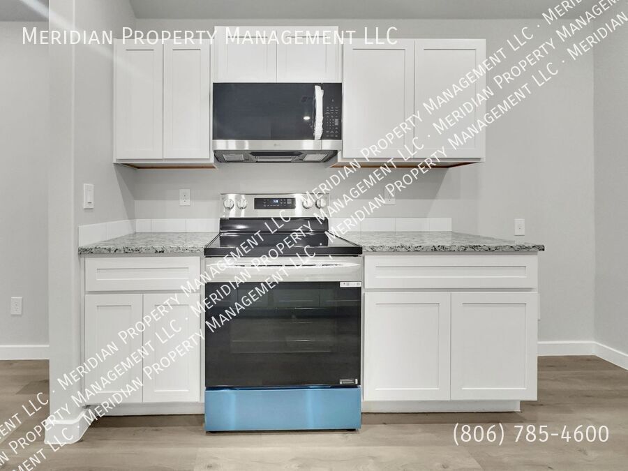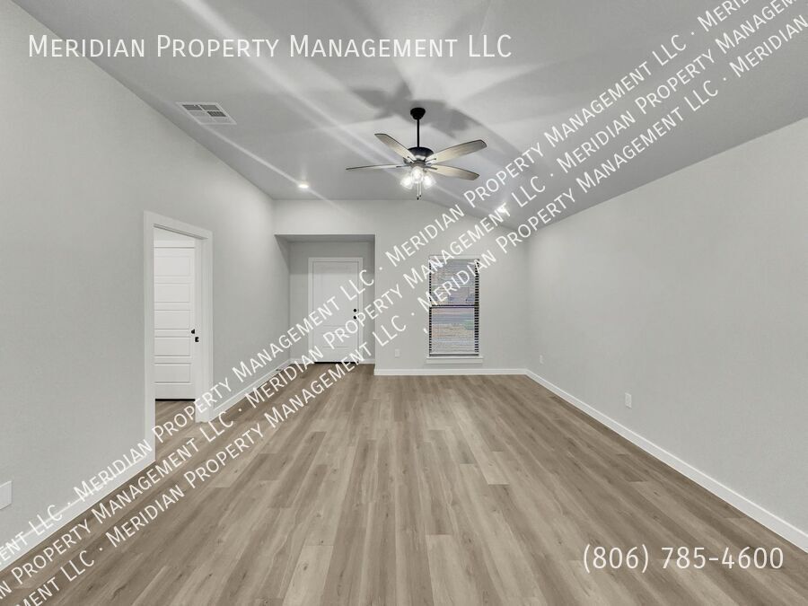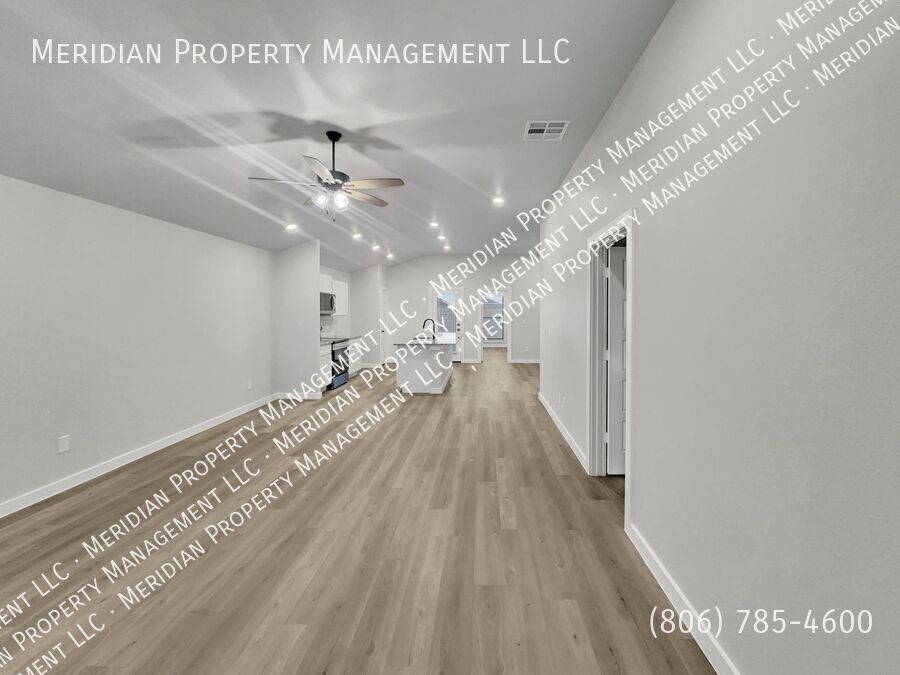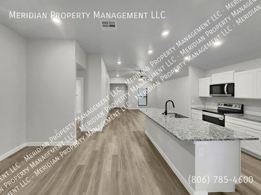 This brand-new 3-bedroom, 2-bath home features all vinyl flooring and stainless steel appliances. The kitchen includes granite countertops, a range, microwave, dishwasher, and space for a standard refrigerator. A separate laundry room provides washer/dryer connections. The primary bedroom includes a walk-in closet and a private en suite bathroom. Additional features include a 2-car garage, a covered back patio, and a fenced yard. Pet-friendly. Be the first to live in this new home.