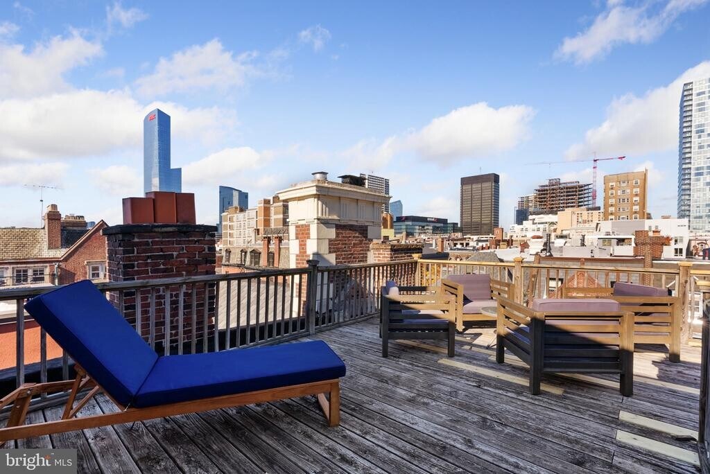 This beautiful building is steps from Rittenhouse Square. This is a bi-level unit with a roof deck with City views" Enter into a marble foyer and the feel of the original old-world charm of the breathtaking building. This restored unit is one of eight. This apartment contains all the amenities and quality finishes usually reserved for new condominium restorations, but these are available to rent! Granite Countertops, SS Appliances, Newly Renovated Bathrooms with Travertine, Original refinished Hardwood Floors throughout, Central Air and Laundry room in the building."