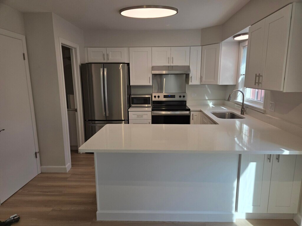 Completely renovated 2 bedroom, 1.5 bathroom all brick townhouse in Glenview just steps from train, shops, library and recreational facilities. Living room features large picture window with views of the neighborhood, new wood laminate flooring, new energy efficient windows. Kitchen has new solid wood white shaker cabinets with quartz countertops extending over island to accommodate bar stools. All new SS appliances, hood vent and Kohler faucet- new disposal, flooring, lighting and window treatments. Open kitchen and eating area with new energy efficient sliding door to private patio. Large master bedroom with wide reach-in closets. Charming second bedroom with two closets. Hall bathroom features new large solid wood vanity with quartz countertop and new SS faucet, new toilet, new lighting, new mirror, new energy efficient window with privacy glass, new exhaust fan and newly reglazed tub/shower. Half bath features new solid wood vanity with quartz countertop and SS faucet, new lighting, new mirror and new toilet. Full basement is partially finished with separate family room and storage/laundry room. Amenities included: central air- central heat- new SS appliances: French 3-door refrigerator, Bosch ultra quiet dishwasher with SS tub, range and microwave- new wood laminate floors- all new energy efficient windows, new micro blinds and linen curtains- new front entry door- new full size washer & dryer- all new door hardware, lighting, switches and receptacles throughout- townhouse has been completely repainted and refinished- private patio, and full basement. Utilities included: water. Is pet friendly. Date Available: March 1, 2026. $2500/month rent. $2500 security deposit required. Please submit the form on this page or contact Jed at to learn more. This property is managed by a responsible landlord using Avail landlord software.