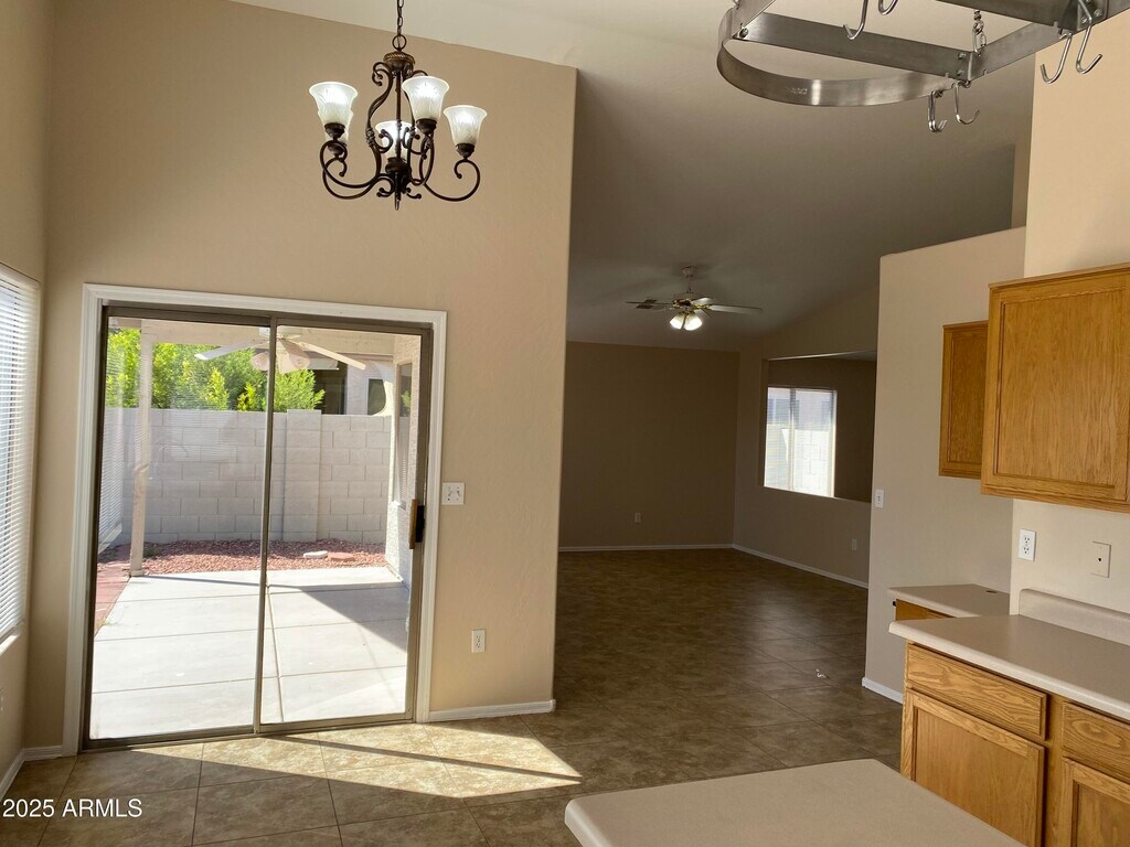 What a GREAT location in Finley Farms! This 3bed/2ba home features an open floor plan,large great room/living/dining room,large eat-in kitchen w/lots of cabinets,SS appliances,pantry,& computer work station. Covered patio off the kitchen,ceiling fans throughout,vaulted ceilings,master bedroom has large walk-in closet,dual sinks,separate garden tub,shower,Freshly painted interior,all tile throughout. Very quiet neighborhood! You don't want to miss out! Looking for a minimum 2 year lease,Minimum FICO score 680,owner/agent