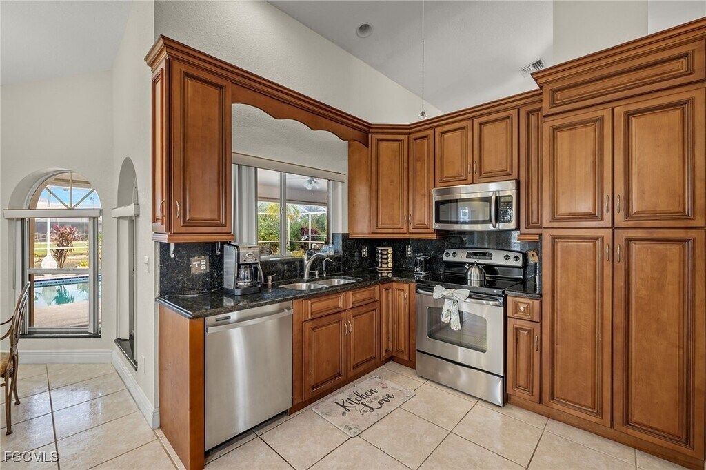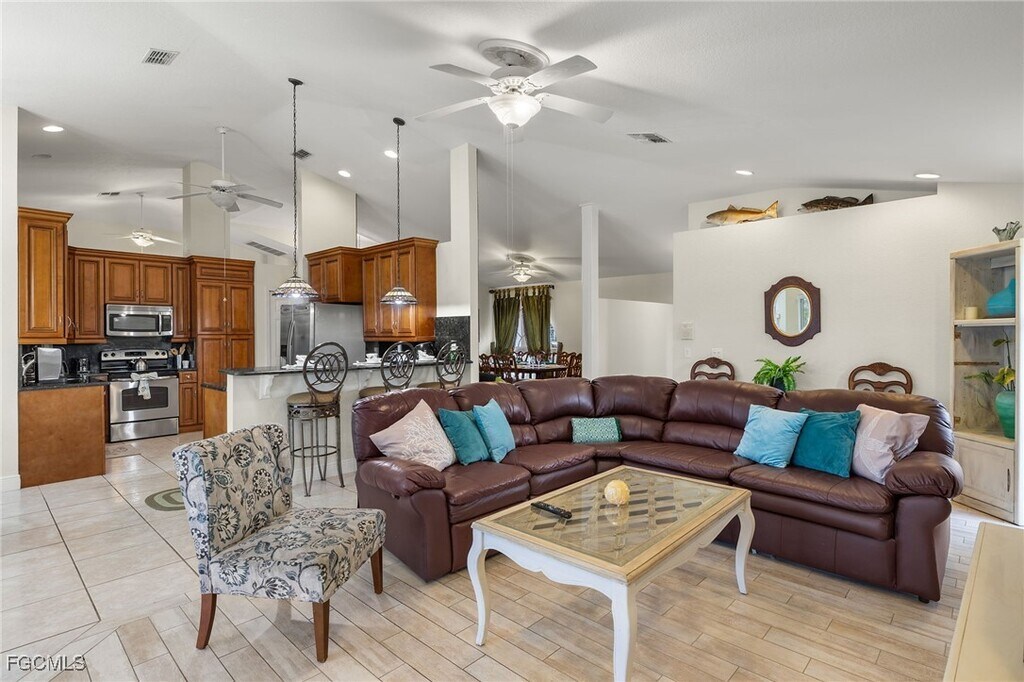 This is a VACATION RENTAL. Owner will not consider an annual rental. Weekly rentals permitted. Villa Dolly is a 3-bedroom 2-bathroom electric-heated pool home located on a freshwater canal in a quiet neighborhood in SE Cape Coral. This house is perfect for family gatherings or a group of friends on vacation. Villa Dolly is conveniently located near a variety of restaurants and stores. Upon walking into Villa Dolly,you are greeted with a small sitting area and coffee bar. The living room is situated at the back of the house next to the kitchen,and offers plenty of seating on the sectional sofa,along with a large flat-screen TV. You can view the pool area. There is also a game room off the front entry that has a foosball table and bar area to entertain! The formal dining area is located to the left of the entryway and has seating for up to 6 guests. There is also a small breakfast nook area off the kitchen with additional seating for four. The fully-equipped kitchen has granite counters and stainless steel appliances as well as room for three at the counter. Villa Dolly's master bedroom suite is located on the right side of the home and features a queen-sized bed and plenty of storage space. The private sliders overlook the pool area. The attached master bathroom has an oversized tub,spacious shower and plenty of room at the vanity. The two guest bedrooms are located on the opposite side of the house. One offers a queen-sized bed and the other is an underwater oasis with two twin-beds. They both share the guest bathroom,which offers a shower and double sink vanity. No doubt,the pool area is where you'll be spending most of your time! The pool has a brand-new electric heater and there is plenty of seating both in and out of the sun,so there's a place for everyone,no matter what they're doing! Why don't you do yourself a favor and book your next family getaway at Villa Dolly? We're waiting for you!