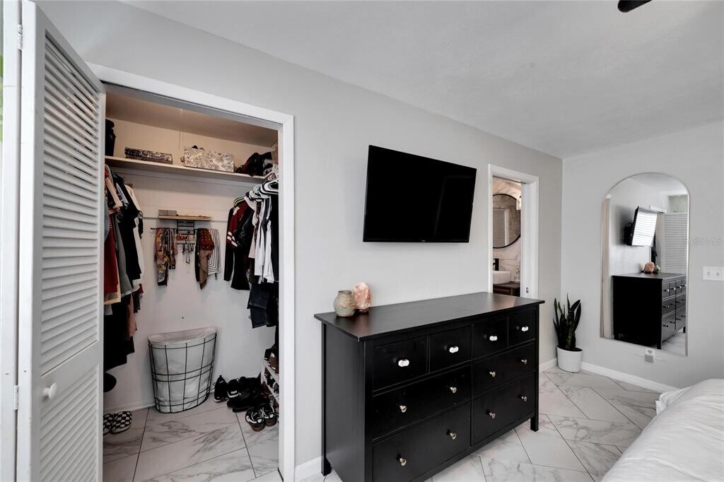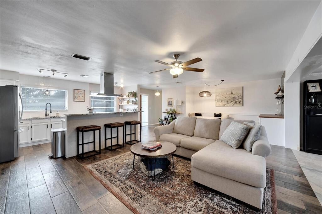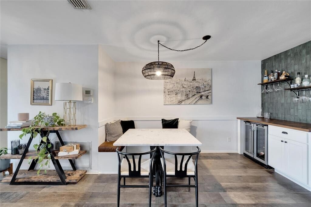 Located just minutes from Historic Downtown Dunedin,Gladys E. Douglas Preserve,Dunedin Golf Club,Countryside Mall,and the stunning Gulf beaches,this gorgeous,fully renovated 2-bedroom,2-bathroom home is available beginning April 15th. From the moment you step inside,you’ll notice the exquisite,top-of-the-line tile flooring throughout—hand selected and expertly laid by a master tile setter—creating a cohesive and luxurious feel. The bright,open-concept layout offers a spacious living area that flows seamlessly into the kitchen and dining space,making it perfect for entertaining. The newly upgraded kitchen features stainless steel appliances,granite countertops,ample storage,and stylish open shelving. Just off the dining nook,you’ll find a custom bar area complete with temperature-controlled wine fridges,an ideal setup for hosting or relaxing evenings at home. The primary suite is generously sized and includes a walk-in closet and a private en-suite bathroom. The guest bedroom is also spacious with ample closet storage. A large bonus room provides flexible space for a home office,additional family room,fitness area,or playroom. Additional highlights include a brand-new AC unit for energy efficiency and year-round comfort. Step outside to your own private Florida oasis,perfect for enjoying the sunshine and outdoor living. This beautifully upgraded home combines luxury finishes,thoughtful design,and an unbeatable location. Don’t miss the opportunity to make it yours. Call,text,or email for more information. $50 app fee,$100 admin fee due upon approval,security deposit equal to 1 month's rent. Home is pet friendly! $30 monthly pet rent per pet and $300 non-refundable pet fee per pet. Utilities paid by renter,lawn and grounds care paid by homeowner. MLS# TB8476239