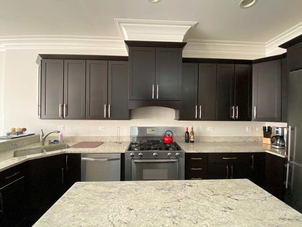Exquisite, spacious, 3-bedroom, 2-bath FURNISHED condo for rent in the heart of Roscoe Village. Welcoming, light-filled living room/dining room with crown molding, lovely built-ins, and custom curtains line the south-facing windows overlooking Roscoe. The open kitchen has granite countertops, a two-tiered breakfast bar and a separate island. The kitchen also features custom cabinets and high-end stainless steel appliances. The primary bedroom with an ensuite bath has a king-size bed, a spa-like bath with a steam shower and heated floors, an incredible, professionally organized walk-in closet, and a large balcony. Spacious 2nd and 3rd bedrooms, loads of storage, in-unit Washer/Dryer, and an extra little nook for studying or playing. The large deck over the garage is perfect for summer lounging or BBQs. Street parking is super easy off of Roscoe. Enjoy walking through the Roscoe Village neighborhood, home to world-class restaurants, shopping, transportation, and schools. This rental is a