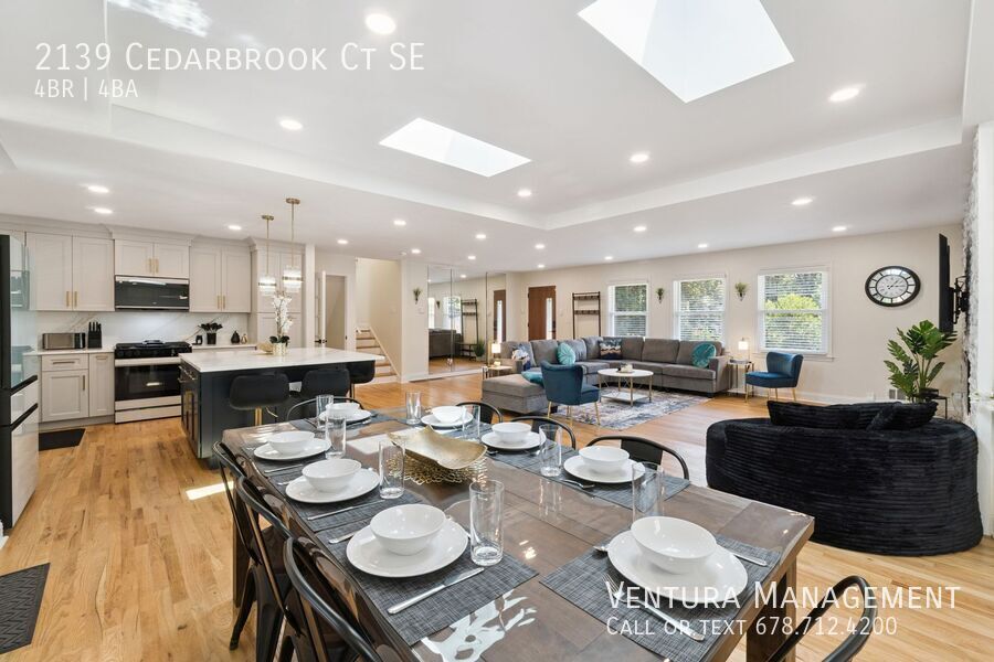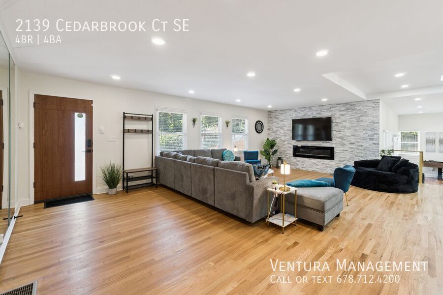 Welcome to Cedarbrook, a spacious and beautifully updated, fully furnished 4-bedroom, 3.5-bathroom home located on a quiet cul-de-sac in Southeast Atlanta. Offering over 2,800 sq. ft. of living space, this property combines modern comfort with exceptional amenities, making it an ideal long-term rental for families, professionals, or anyone seeking a blend of convenience and relaxation. Key Features: • Bedrooms & Bathrooms: 4 bedrooms, 3 full bathrooms, and 1 half bathroom, including a large primary suite with walk-in closet and en-suite bath featuring a soaking tub (jets not working) and walk-in shower. • Living Space: Open-concept main floor with a spacious living room, 65” Smart TV, and an electric fireplace. • Kitchen: Newly renovated chef’s kitchen with stainless-steel appliances, island seating, and direct access to the back patio. Additional full kitchen located on the lower level, ideal for multi-generational living. • Game Room: Dedicated recreation space with foosball, air hockey, shuffleboard, and more. • Basement Level: Includes a private living area with full kitchen and queen-size pull-out sofa bed, queen bedroom, full bath, and laundry room with washer/dryer. • Outdoor Living: Private backyard oasis with a hot tub, firepit, hammock, outdoor dining area, and BBQ grill. • Parking: 2-car carport with additional driveway parking (steep!). Amenities: • 7 Smart Roku TVs throughout the home • High-speed internet and WiFi • Washer & dryer • Central heating and cooling • Electric fireplace • Private hot tub Location: Conveniently located less than 10 miles from Downtown Atlanta, this home offers easy access to major attractions such as the Georgia Aquarium, World of Coca-Cola, and Centennial Olympic Park. The BeltLine, Madison Yards shopping center, and numerous restaurants are just minutes away. Quick access to I-20 and other major highways makes commuting throughout Atlanta simple. Lease Details: • The monthly rate is $6,500/month. • Refundable Security Deposit: equal to one month rent. • Included Services: Internet, pest control, landscaping, trash service. • Utilities: Water/sewer, power, gas are not included in the rent but can be added for an additional monthly charge based on lease terms. • Pet Fee: $500/pet. • Minimum rent duration: 3 months. • Maximum rent duration: 12 months at a time with the possibility of extension. • No Section 8. • No smoking allowed inside. Additional Information: • This property is being offered only as a fully furnished home. • The property is currently occupied and available for showings by appointment only. Please inquire with your exact desired lease dates. A/C Air Hockey Foosball Table Fully Furnished Heating Hot Tub Office Space Shuffleboard Smart Tv Wi Fi