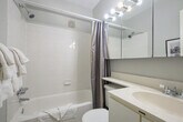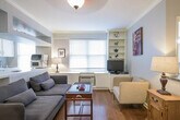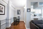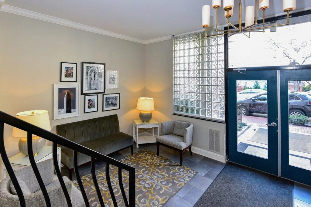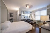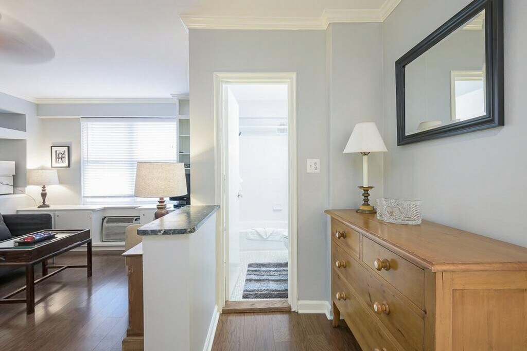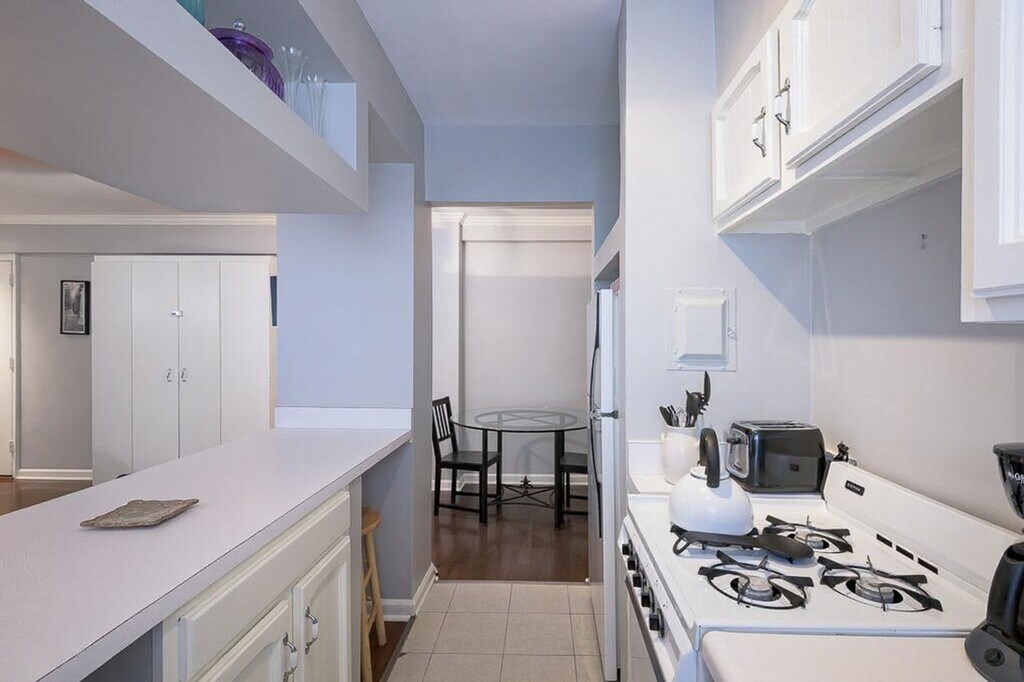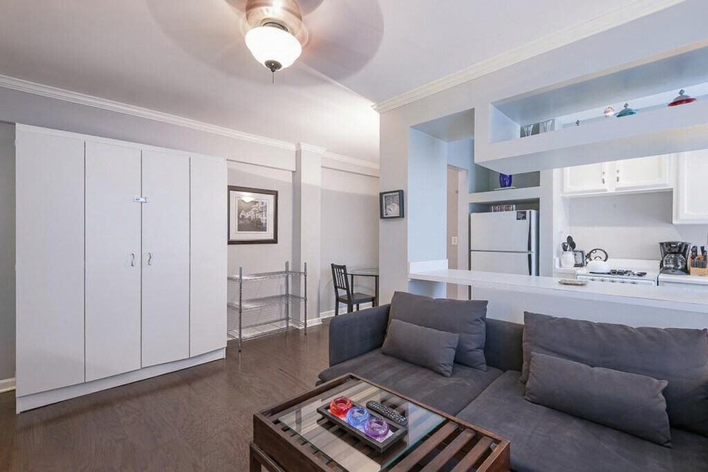 Feel at home in this fully furnished studio condo with 1 bathroom on the top floor of a 5-story building at the convergence of Dupont Circle and the West End. This sunny unit features hardwood floors, built-in storage, a gas stove and microwave in the kitchen, and a tub and shower in the bath. A full-sized Murphy bed provides added space. The building offers a card-operated laundry. The building boasts a shared roof deck with great views of downtown DC. Restaurants, a Whole Foods Grocery Store, a Trader Joe's, and shops are just blocks away. The Dupont Circle (red line) Metro Station is an easy 7-minute walk away, and the Foggy Bottom (blue, orange, and silver lines) Metro Station is just over 10 minutes away. The West End is bounded by Pennsylvania Avenue to the south, P Street to the north, Rock Creek Park to the west, and 22nd Street to the east. The West End is home to the embassies of Qatar and Spain. George Washington University Medical Center is on the edge of the West End, at Washington Circle. In-wall air conditioning units are included. [SI]