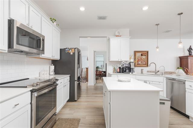 In the beautiful Bridgewater community, just minutes from Lake Lavon, offering an abundance of amenities for your enjoyment! The community features serene ponds, paddle boarding, fishing, beach volleyball, a pavilion, picnic and grilling areas, mini-golf, playgrounds, swimming pools, scenic sidewalk trails, a dog park, and a fitness center—everything you need for an active lifestyle. This home boasts a beautifully landscaped backyard with French -Drain complete with low-maintenance artificial grass, providing a lush and pristine outdoor space year-round. Inside, thoughtful upgrades enhance everyday living, including a premium dishwasher, modern stove, and elegant mirrors that elevate the style beyond standard builder-grade finishes. Additionally, a water softener system and a high-quality water filtration system have been installed, ensuring comfort and convenience for you and your family.
