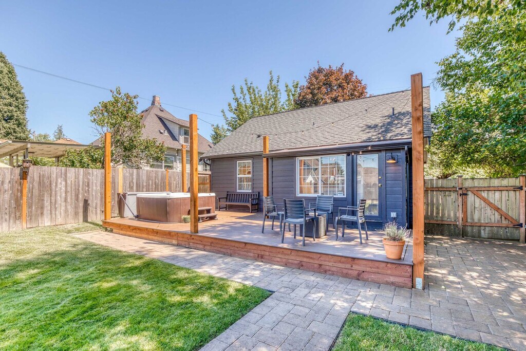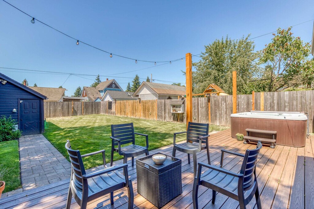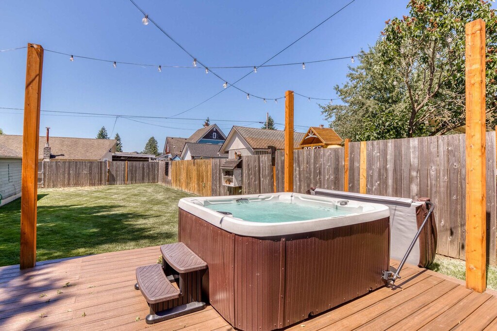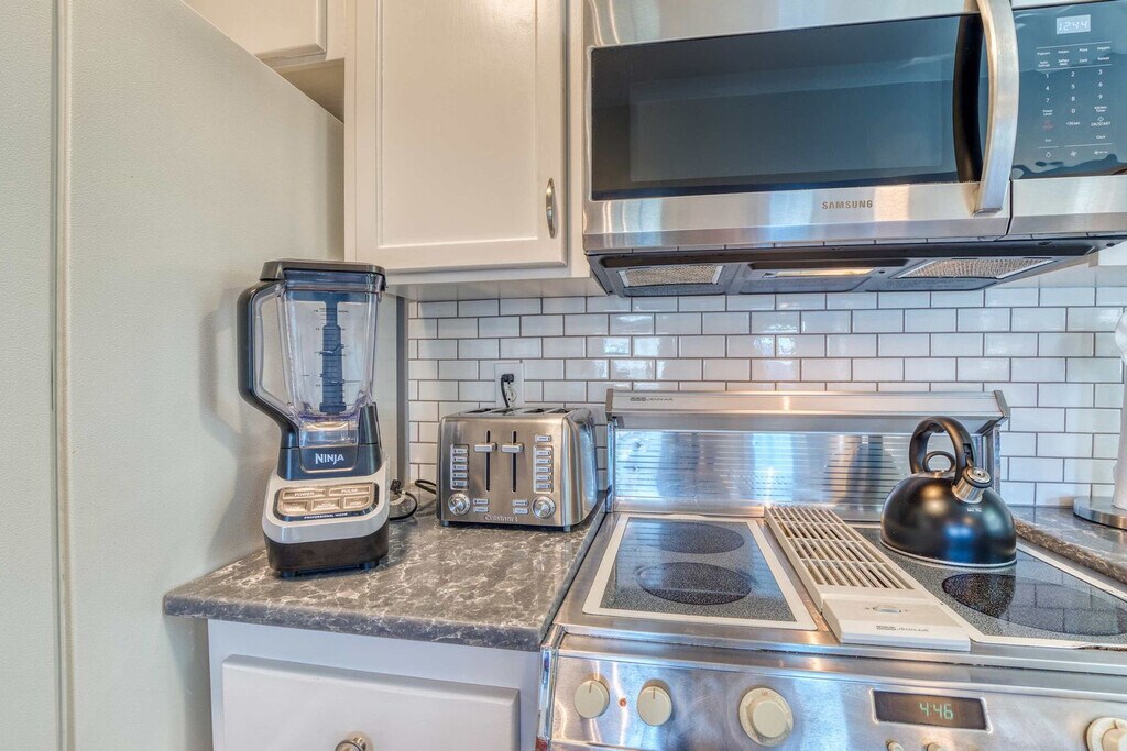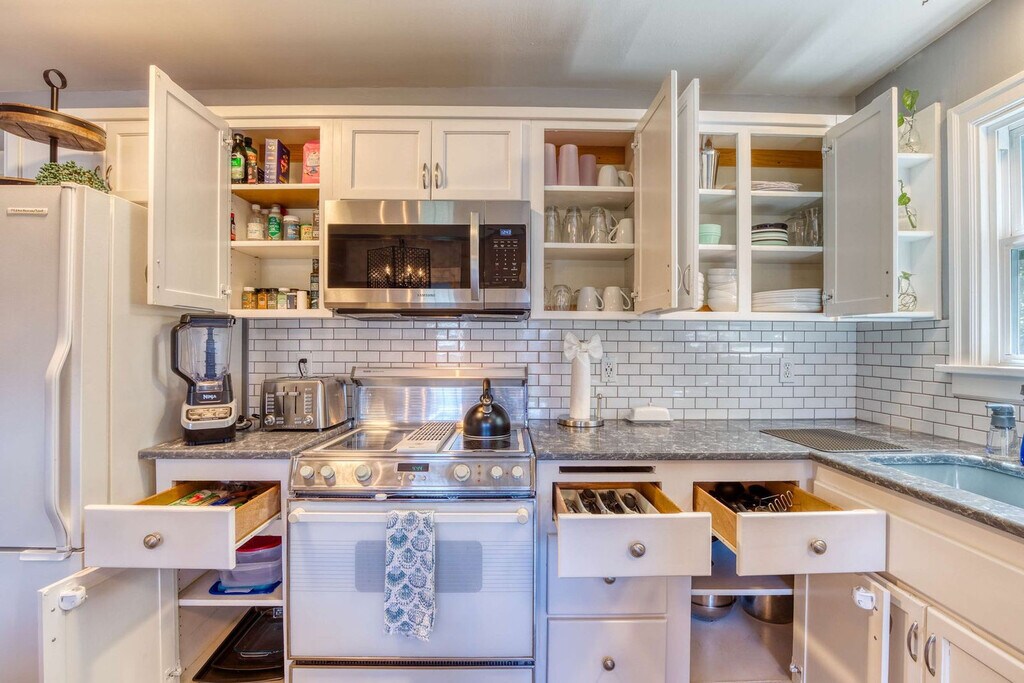 Feel at home in this centrally located 2-bedroom home. It has everything you need for a quick weekend away or for a long-term remote work stay. Each bedroom has a queen bed, and there is also a pull-out sofa for additional guests. The open kitchen and dining room have tons of natural light coming from the sun room. A smart TV in the living room connects to all the major streaming services. Walkable to historic First Street for coffee, restaurants, and shopping. Includes a double daylight co-working desk space in the living room.