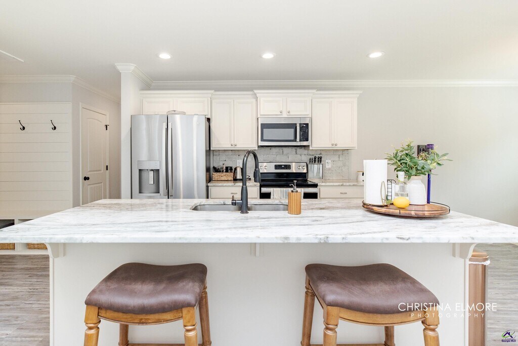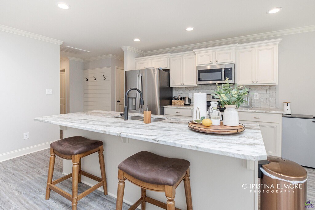 Gwen GilesWelcome HOME! Beautiful, well-maintained home built by WCH Homes! The "Blue Jay" plan features open floor plan with beautiful finishes! Kitchen includes stainless appliances, large island, and walk-in pantry. LVP flooring throughout main areas. Carpet in bedrooms and tiles floors in baths. Master suite is spacious and features beautiful bathroom with double vanity, walk in shower, garden tub, and a huge closet! Brick front with vinyl sides and back. Fenced in, private backyard view!