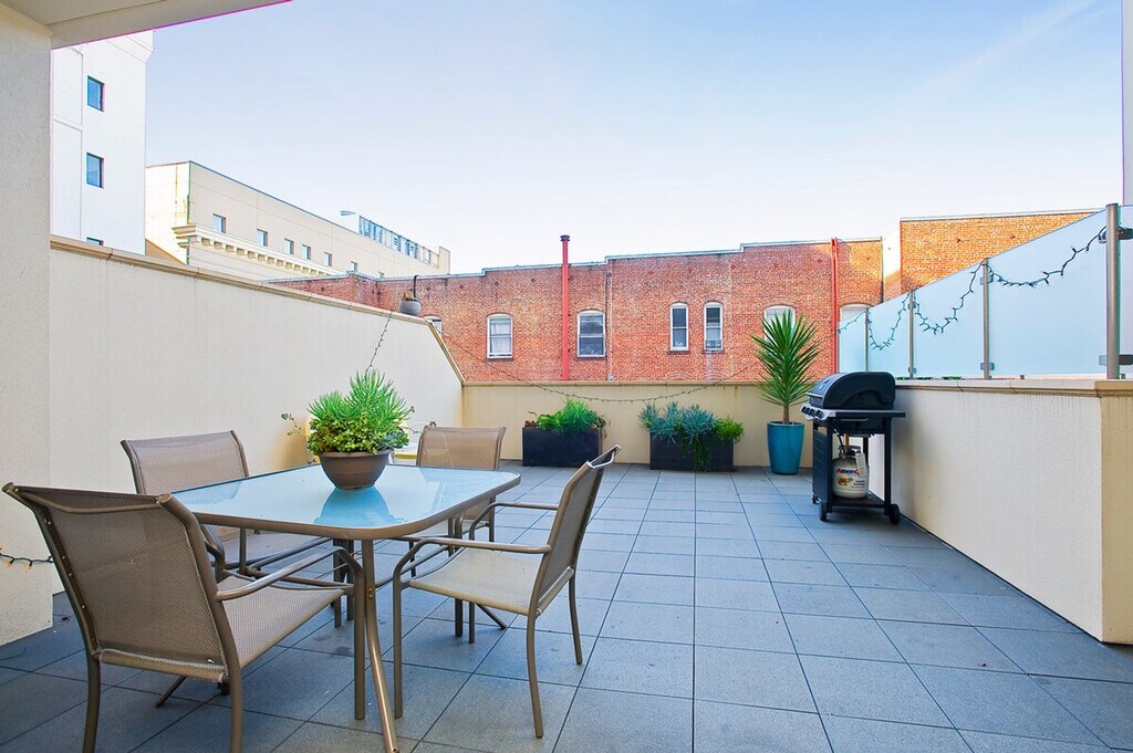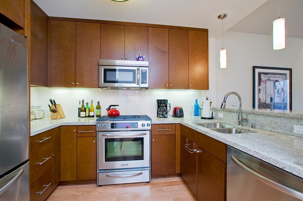 Feel at home in this oversized and bright 1-bedroom, 1-bathroom condo located on the 4th floor of a 50-unit building in the heart of Hayes Valley/Civic Center. Built in 2009, this apartment boasts an open floor plan with wood flooring in the main living area, a private deck, and ample closet space, including a walk-in closet. Enjoy the convenience of in-unit laundry and 1-car secured garage parking. The building offers amenities such as an elegant lobby with an attendant, high-speed elevators, and a beautifully landscaped shared roof deck with barbecue and seating. This apartment features a queen-size bed, a fully equipped kitchen, and a luxurious bathroom with a shower over the tub. The living space is complemented by a large private deck, perfect for relaxation. Additionally, the unit includes a washer/dryer and cable TV for your convenience. The property includes 1 secured garage parking space with specific vehicle size restrictions: maximum length of 16’3”, width of 6’3”, and height of 5’8”. PG&E is covered up to $145 per month, with any excess being the tenant's responsibility. Pets are permitted with prior permission and may incur a non-refundable pet charge or increased deposit and a monthly charge. Certain pet breeds and types are restricted, and a fine will be charged for not cleaning up after pets. Situated at the corner of Page and Gough, this prime Hayes Valley location offers a Walker’s, Rider’s, and Biker’s Paradise with a 100 Transit Score and 98 Walkscore. You are just steps away from public transportation lines including BART and Muni, tech shuttle stops, and easy access to downtown, freeways, and shopping/dining on Hayes Street. Discover nearby cultural attractions such as the War Memorial Opera House, Ballet, Symphony, and Bill Graham Auditorium, as well as the vibrant shopping and dining scene. Pets must be restrained during maintenance service calls and are not allowed in common areas except for entering or exiting the building. They must be on a leash at all times when outside the unit. The property enforces a no-smoking and no-parties policy, and any violation may result in penalties. Check-in and check-out times are flexible, but arrangements should be made in advance. Please note that a refundable security deposit of $1,000 is required and must be paid directly to the partner after the booking is confirmed. [SI]