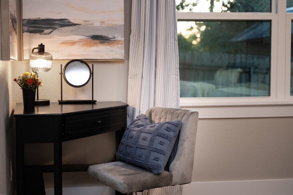 Welcome to Helena Haven, a beautifully remodeled single-story home where you can feel at home, offering the perfect blend of comfort, convenience, and style. This retreat features 4 bedrooms and 3 bathrooms. This home is designed to host families, groups, and game day gatherings alike. Relax in the living room with a large sectional for 6, two ottomans, a 65” Smart TV, and board games. The fully stocked kitchen includes an eat-up bar for 3, a coffee bar with drip and pod options, and every appliance you need, including a blender, toaster, crockpot, and wine glasses. Enjoy meals together around the 60” dining table with seating for 6. There is a full laundry with a washer and dryer, iron, ironing board, and steamer. Additional sleeping is available with 1 rollaway twin and a queen blowup mattress. Ideally located just 1 mile to Legends Event Center and Top Golf, 1.5 miles to Century Square dining and shopping, and 2.5 miles to Kyle Field and Texas A&M. It's also within walking distance to Farm Patch Market for fresh produce and the newly rebuilt Chicken Oil Co., a local favorite. Events require written approval and a $300 or more fee. No smoking of any kind is allowed. Only registered guests are allowed unless approved in writing. Please respect our neighbors and our quiet hours which start at 9 PM. When leaving the home at any time, please ensure all lights and fans are turned off along with all appliances. No tape, anything sticky, glitter, hanging using nails, or anything that could damage our walls is permitted in any part of the home. Please use the plain black towels or black towels labeled "makeup" to remove makeup, not the white washcloths or towels. The primary suite includes a desk. [SI]