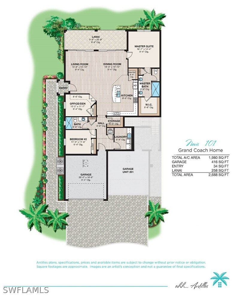 Enjoy the lifestyle of this Grand Coach Home in the Antilles Community. This spacious first floor condo has an open concept floor plan and includes 3 bedrooms,2 full bathrooms,screened lanai and 2-car garage. This condo offers features and finishes to include fine and contemporary elements such as Shaker style kitchen cabinetry,quartz countertops and stainless steel kitchen appliances. The unit is conveniently located within walking distance to the community Flamingo Club. Conveniently located within 5 miles of Marco Island and SE Naples Restaurants and shopping.