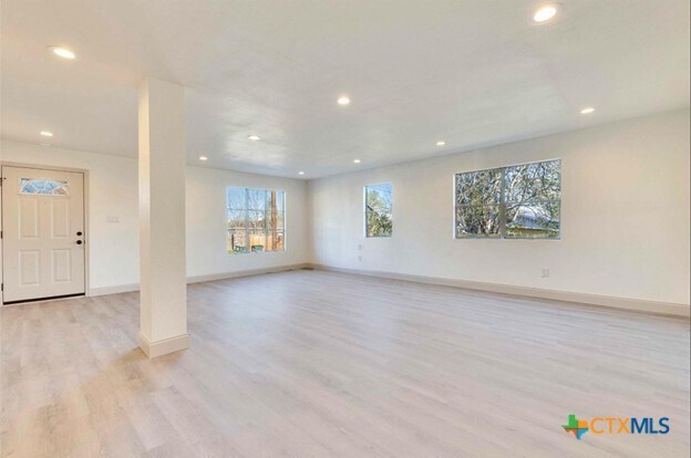 Discover this stunningly renovated 3-bedroom,2-bath home located just minutes from Texas State University. Enjoy the Texas sunshine in the expansive backyard or unwind on the inviting front or rear porches. Thoughtfully updated throughout,this home features a brand-new roof (December 2023),new plank flooring in the main living areas,and soft carpeting in the bedrooms. The fully updated kitchen and bathrooms boast stainless steel appliances,quartz countertops,and stylish decorative tile. The open-concept living area is perfect for entertaining or everyday living. Ideally positioned between Austin and San Antonio,this home is within walking distance to the downtown square,offers convenient access to I-35,and is just minutes from the San Marcos Outlet Mall and Amazon Fulfillment Center.