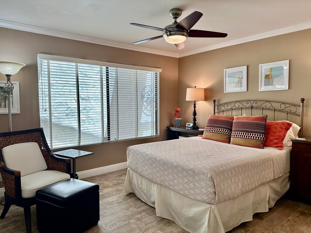 Experience the perfect blend of comfort and luxury in this beautifully upgraded 2-bedroom plus den (owner has placed a bed) and 2-bath condo,located in a prestigious golf course community. Enter through the private courtyard into a home designed with attention to detail and modern finishes. The spacious back patio provides a peaceful retreat,offering stunning views of the shimmering lake and surrounding mountains. Whether you're relaxing or entertaining,this serene setting is ideal for enjoying the beauty of nature. Don't miss the chance to make this exceptional condo your next rental home.
