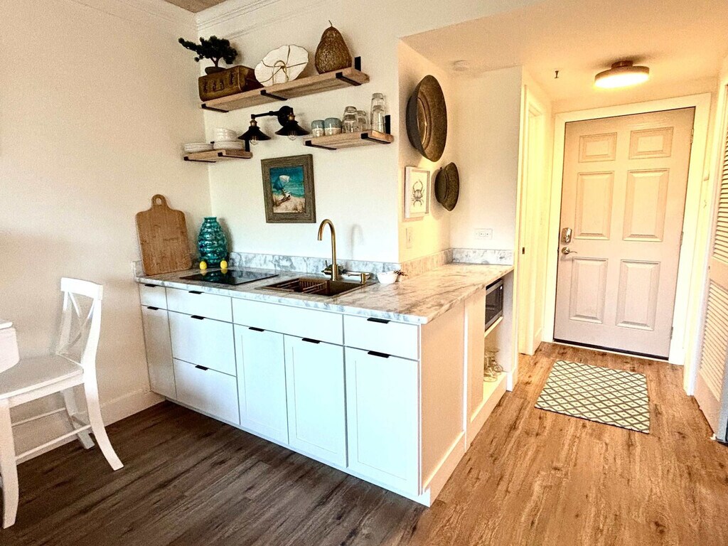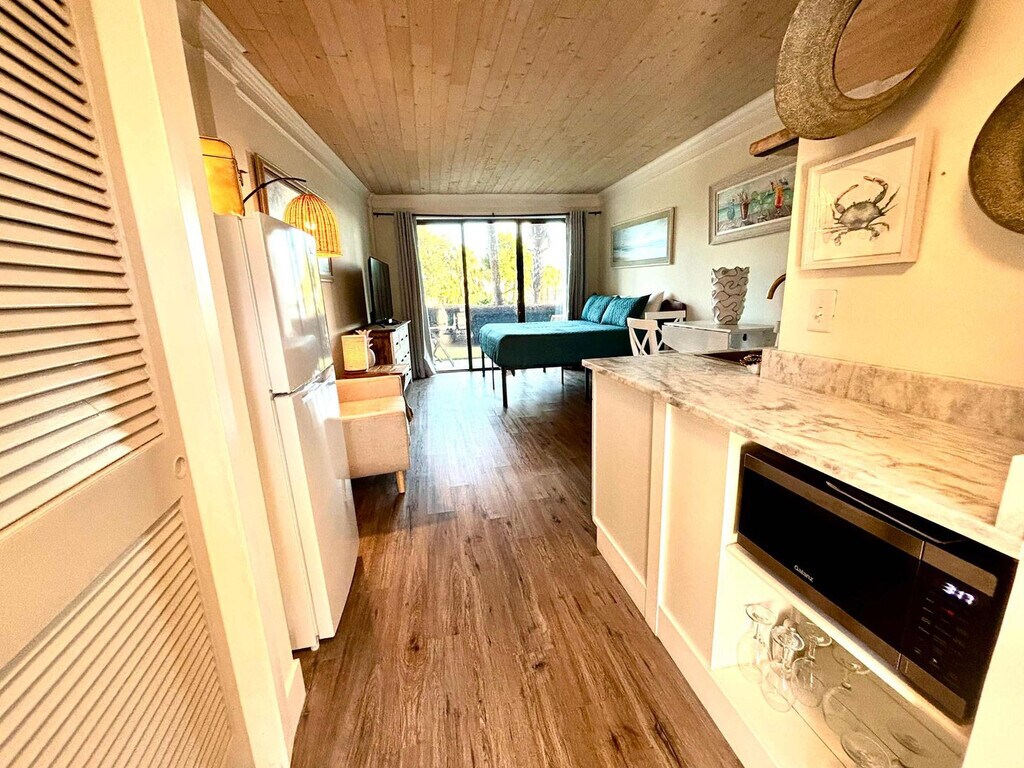 Experience gorgeous bayside views in this first-floor studio condo in the heart of Fort Walton Beach. Feel at home in this waterfront escape on the tranquil side of the bay. This cozy studio sleeps up to 4 guests and features a full bathroom with a stand-up shower and a kitchenette that includes a fridge, induction cooktop, microwave, pots and pans, silverware, utensils, a standard coffee pot, and a Keurig. Relax with the large Smart TV with standard cable. Step outside onto the cozy patio with two tables with seating for four and enjoy the refreshing bay breeze. Guests also have access to community laundry on the property. Bring your boat (up to 26 feet) with the included boat slip, putting you right on the water for endless fun. If you are utilizing the boat slip, please contact us as soon as possible to provide your insurance information and details on which slip is for your use. Pets are welcome with a one-time pet fee of $50. Pirates' Bay Guest Chambers and Marina are centrally located in the heart of Fort Walton Beach, just minutes away from a variety of dining, shopping, and local hotspots. You’ll be less than a mile from Liza Jackson Park, 2.5 miles away from The Boardwalk on Okaloosa Island, and 3 miles from John Beasley Park. You'll be just 1 mile from Downtown Fort Walton Beach and within walking distance to Olive Garden, and a brisk walk to our local favorite Soi Bistro. You'll be 2 miles from Blue Dolphin Beachwalk and a 6-minute drive from Wild Willy’s Adventure Zone. Check-in time is 4:00 PM CST and check-out time is 10:00 AM CST. Due to this being a residential community, noise ordinances are at 10 pm sharp. Excessive noise, parties, illegal activity, or disturbances are not permitted at any time. Student groups/groups under age 25 are not permitted at any time. If you book, and it is discovered that your group is under age 25, there will be immediate eviction with no refund provided. [SI]