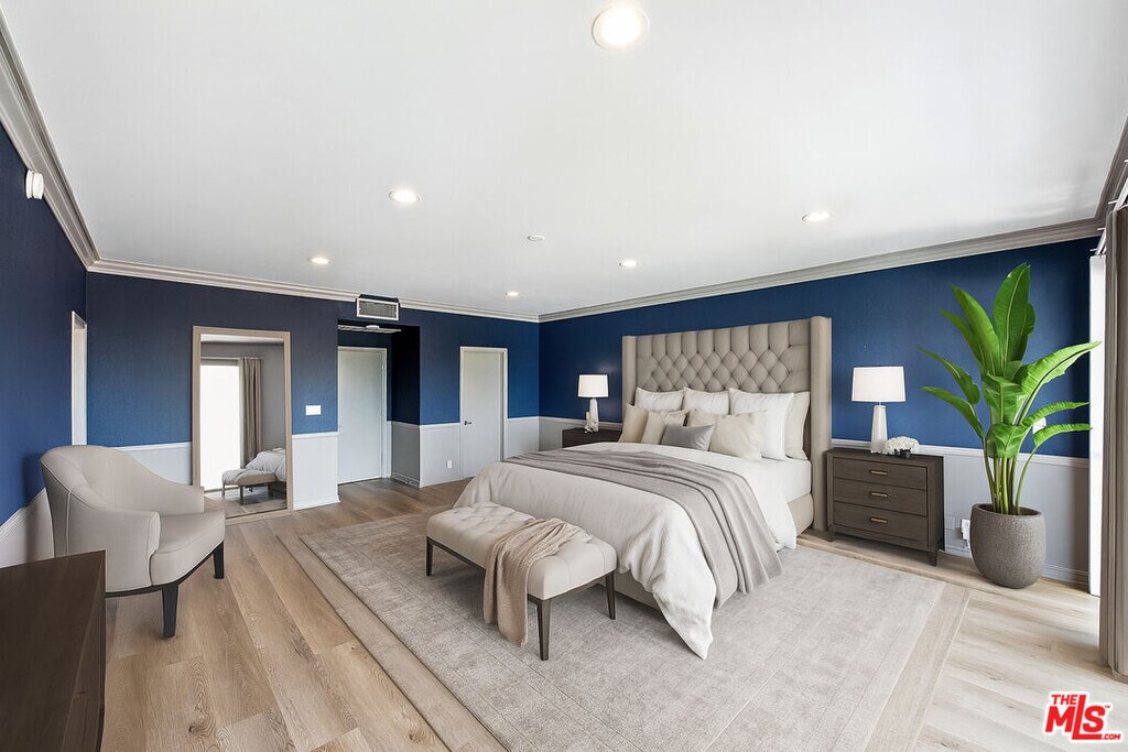 This exceptional third-floor penthouse spans the entire top level of an exclusive three-unit building north of Wilshire, offering over 3,500 sqft of luxury, privacy, and convenience. Step directly from a private elevator into a bright and expansive residence featuring soaring ceilings, rich hardwood floors, and refined details throughout. The grand formal living room with marble fireplace opens to a covered balcony with stunning views, while the formal dining room and adjacent breakfast room provide elegant spaces for entertaining or quiet mornings. The spacious primary suite is tucked away in the back for ultimate privacy, featuring two large walk-in closets, a luxurious marble-clad bathroom, and a private balcony with sweeping views of the Hollywood Hills and Downtown LA. Two additional en-suite bedrooms offer flexibility for guests, home office, or family. Additional highlights include a generous den, in-unit laundry, two AC zones, ample storage, and a secured 3-car garage. With Whole Foods just minutes away and world-class restaurants, boutiques, and hotels all within walking distance, this is Beverly Hills penthouse living at its finest. Please note that certain images have been virtually staged for illustrative purposes only, to simply provide inspiration and demonstrate potential use of the space. MLS# 26635931