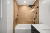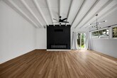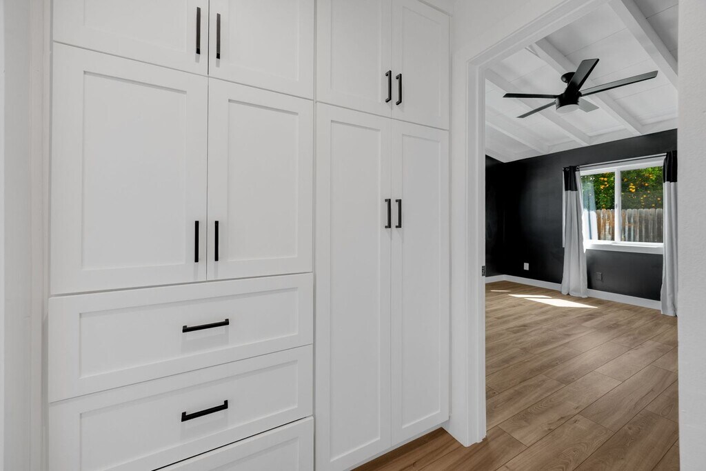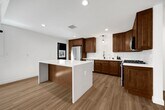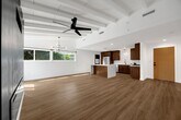 Updated and freshly painted interior with modern accent walls and smooth surface flooring throughout. The home features updated windows that enhance natural light and energy efficiency. The fully functional kitchen includes wood cabinetry, recessed lighting, and is equipped with a refrigerator, stove, dishwasher, and microwave. Additional features include central heating and air conditioning, ceiling fans in the living room and all bedrooms. A reverse osmosis water filtration system and soft water system are included. Washer and dryer are conveniently located in the attached two-car garage. Landscaping service is included. The property has been professionally cleaned and is move-in ready.
