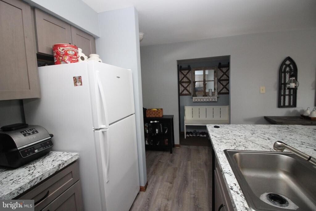 First Floor (NO steps) apartment for rent. The open concept apartment has a full service kitchen with breakfast bar. Nice neutral colors throughout. Side deck for outdoor enjoyment. Kitchen was completely remodeled less than a year ago. Bathroom also updated less than a year ago. Rental unit has brand new washer, dryer and refrigerator. This unit also has plenty of storage in the laundry room and a one car garage. There is a nice side deck for outdoor entertaining and/or grilling. Each bedroom has a nice deep closets. Tenant responsible for electric, water and sewer and trash. Good Credit and NO pets.