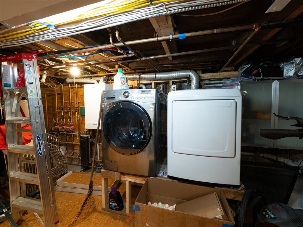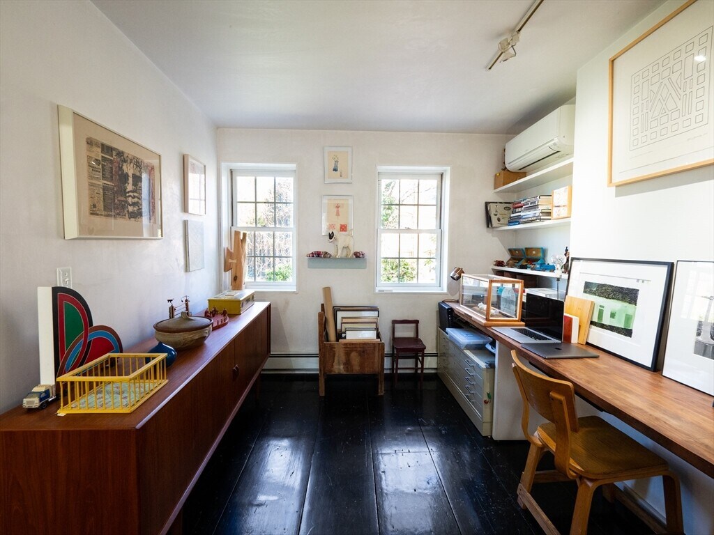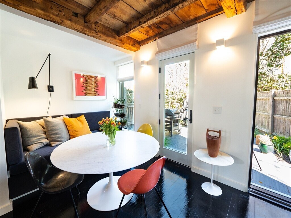 A 1826 brick rowhouse completely updated into a custom artist loft-like single-family home,done by an artist & an architect. You are greeted by a stunning kitchen showcasing an oversized leather-textured marble countertop,custom cabinets & gas stove with accompanying stainless steel appliances. From the kitchen,you see right through the rest of the open main floor to a flex space that you can use as a dining area or lounge with a gas fireplace. Walk out the main floor to your own private yard complete with a bluestone patio & access to a private parking spot (w/ EV charging capability). Second floor is a fully open layout with a custom walnut wood built-in desk & custom cabinets,as well as a recently renovated full bath with a stand-up shower. The master bedroom is the entire top floor w/ large windows & a double deep closet. Original king pine 12-18 inch stained hardwood floors throughout. In the basement: a washer/dryer,slop sink; room for storage or your own workshop. Avail 9/1 MLS# 73503591