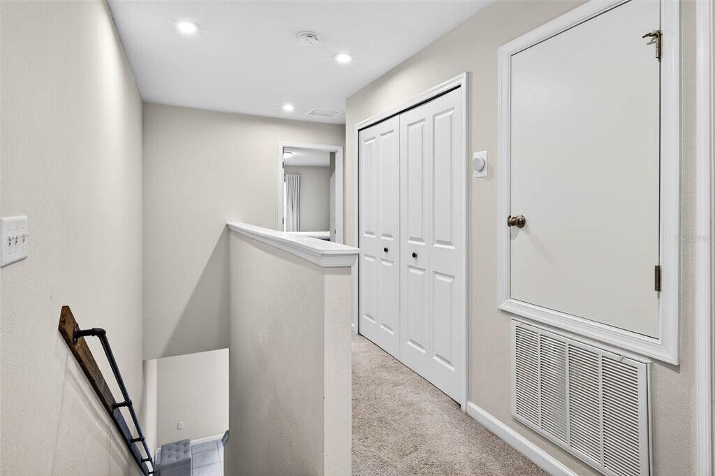 This modern townhome,built in 2020 by Ryan Homes,offers a well-designed layout and contemporary finishes. The second level includes a spacious primary bedroom with an en-suite bathroom featuring a double-sink vanity and a walk-in shower,along with a large walk-in closet. Two additional bedrooms and their full bathroom are also located on the second floor. The first floor includes durable ceramic tile flooring,with carpet on the second level for added comfort. The open-concept main living area connects the living room,dining space,and kitchen,leading seamlessly to a covered lanai—ideal for relaxing or outdoor dining. A one-car garage provides additional convenience. Located minutes from I-75 and I-4,this property offers easy access to major commuting routes,South Florida Avenue,and the Orlando corridor. This townhome presents a strong opportunity for those looking for a stylish and well-maintained residence in a thoughtfully planned community. MLS# TB8486733