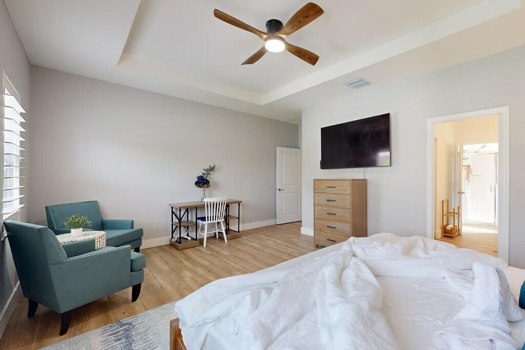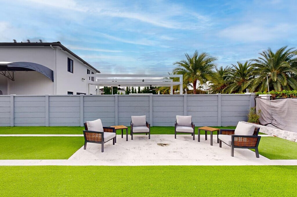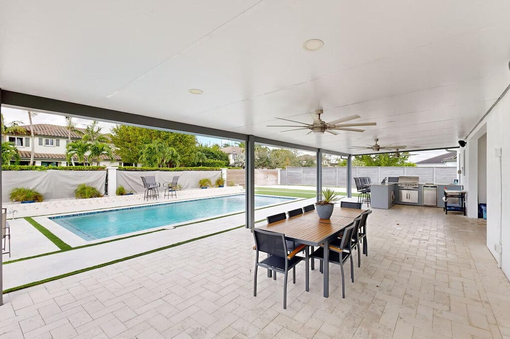 The advertised rate of $6,946/month is the lowest available price, based on a 1 month(s) stay with a move-in date of April 19, 2026. Rates vary depending on the duration of stay, season, and other parameters. For exact pricing and additional pricing components, please visit our website and enter your desired move-in and move-out dates. The rate is applicable when billed upfront; it can be higher if billed in multiple payments. Feel at home in this luxurious single-level retreat in Miami, designed with every detail to make your stay unforgettable. With single-step access and a spacious layout, it's the perfect getaway for families, friends, and guests of all ages. Outside, you'll find an entertainer's dream: an outdoor kitchen complete with a CalFlame grill, side burner, refrigerator, and sink, ideal for family meals or sunset barbecues. The backyard oasis includes flexible seating and a refreshing plunge pool for daytime fun and cozy evenings under the stars. Inside, relax in the family room and enjoy movie nights on the large 85' TV with an indoor surround sound system. The fully equipped kitchen is ready for your culinary creations, with modern appliances and a large bar-style counter. For larger or more formal dining and entertaining, there is seating for up to 12 at the two extendable dining tables. This home is equipped with central AC and ceiling fans in each bedroom, filtered drinking water/ice, a washer/dryer, hair dryers, and an iron to make your stay seamless. If you'd like the pool heated during your stay, there is a $300 charge for every 30-day period. This fee must be paid at least 2 days before check-in to allow time for the pool to reach the proper temperature. The garage can be made accessible for up to two cars if needed. Guests will have access to the entire property. The outdoor Wi-Fi/Bluetooth speakers offer the flexibility to play music for outdoor enjoyment separately or concurrently with the indoor music selections, just be mindful of the quiet neighborhood and respectful of neighbors. While the property is regularly treated for bugs and insects, please be aware that Florida's sub-tropical climate can attract critters, so kindly keep doors closed as a preventive measure. There will be a mid-stay cleaning for stays longer than 45 days. The property features 2 exterior security cameras on the exterior of the house. All cameras are outward facing and do not look into interior spaces, are on and not motion activated, and record video. For those working remotely, a Wi-Fi-connected printer is available upon request. [SI]