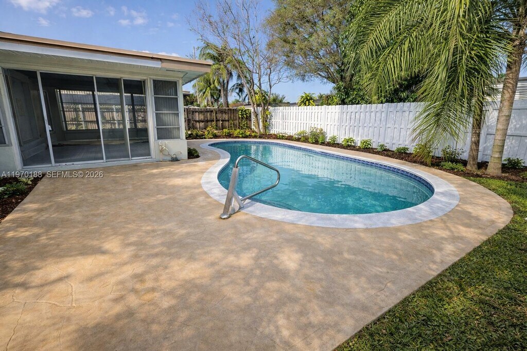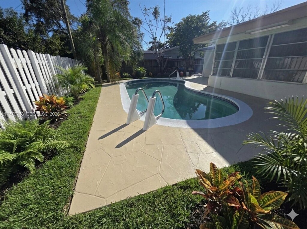 Centrally located in Hollywood, this beautifully updated LUXURIOUS 3BD/1BA home is move-in ready. Features a bright, open floor plan with large porcelain tile throughout. The fully renovated kitchen boasts sleek quartz countertops and brand-new stainless steel appliances. A spacious, sun-drenched Florida room offers flexible space that easily doubles as a 3rd bedroom or home office. Step outside to your private, fully fenced backyard oasis complete with a sparkling pool, stamped concrete deck, and an outdoor shower. Includes dedicated washer/dryer and a covered carport. Low maintenance and a prime location close to dining, shopping, and beaches. This won't last long! MLS # A11970188