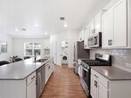 Beautiful home featuring an open floor plan with three bedrooms and two bathrooms, and no carpet throughout. Enjoy the privacy of the backyard along with a spacious two-car garage. Located in a quiet suburban setting with easy access to the city—just minutes from H-E-B, hospitals, toll roads, gyms, restaurants, and shopping. Enjoy the convenience of everything nearby, along with access to the community pool. Thoughtfully designed with a spacious kitchen island, plus refrigerator, washer, and dryer included. Bar stools are available for lease or purchase if desired. Move-in ready and easy to love. MLS ID 6673475