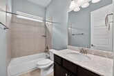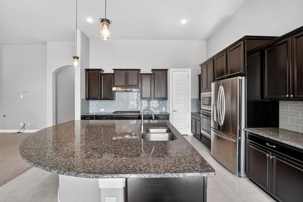 This immaculate home is filled with thoughtful upgrades and designed for both comfort and entertaining. The four sides brick and stone exterior offers great curb appeal, while the oversized covered patio with electric sun shades creates the perfect outdoor retreat. Inside, the kitchen stands out with upgraded cabinetry, a huge pantry, and an expansive granite island that opens to the family room. The large dining area easily accommodates a full-size table, ideal for gatherings. The family room features a cozy fireplace and transom windows that bring in abundant natural light. Details like rounded corners, high ceilings, 8 foot wood paneled doors, and elegant arches add character throughout. The spacious primary suite includes dual vanities, quartz counters, a soaking tub, oversized shower, and a generous walk in closet. The home is complete with a great and spacious backyard offering plenty of room to enjoy the outdoors. Pets ok; limit two; 50lbs or less. *** Resident must choose between two resident benefit packages at time of application. MLS ID 5090012