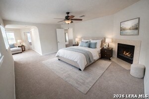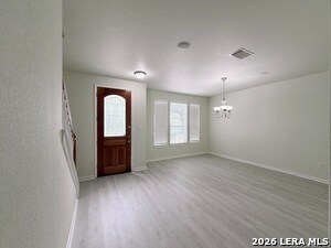 Welcome to 21415 Branding Bay, a beautifully designed home tucked away on a quiet cul-de-sac and backing to a peaceful greenbelt, offering both privacy and scenic views. Inside, you'll find a spacious open-concept layout that seamlessly connects the living room and kitchen-perfect for everyday living and entertaining. The kitchen features granite countertops, double ovens, an updated tile backsplash, a breakfast area, and plenty of space to gather. The primary suite is a true retreat, complete with a cozy fireplace, abundant natural light, and a versatile alcove ideal for a sitting area, home office, or nursery. The primary bath offers double sinks, a relaxing garden tub, and a large walk-in closet. Upstairs, a generous game room provides endless possibilities-whether you need a second living area, media room, office, or playroom. Additional highlights include surround sound, window coverings, gutters, and updated tile flooring throughout all wet areas. Located in the desirable Fox Grove community within the highly sought-after Northside ISD, residents enjoy access to exceptional neighborhood amenities, including a pool, clubhouse, park, playground, and sports court. You'll also appreciate being just minutes from shopping, dining, and everyday conveniences. This home offers the perfect blend of comfort, flexibility, and location. Come see why 21415 Branding Bay could be your next home.