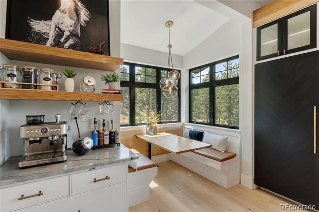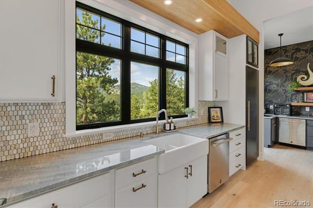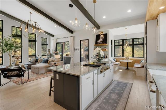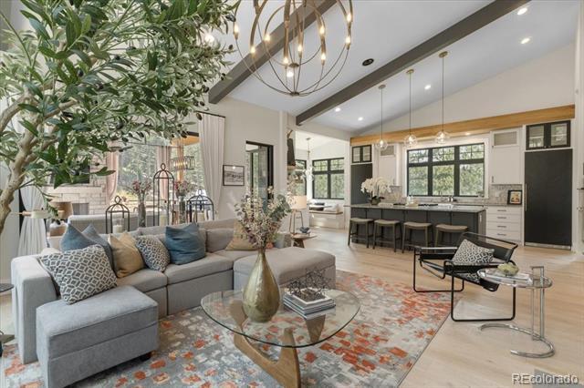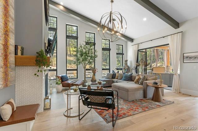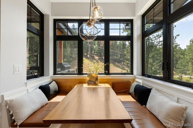 Nestled in a private forest with sweeping mountain views, this stunning 2022 modern mountain retreat seamlessly blends contemporary design with natural beauty. Offered for lease, the 3-bedroom, 2.5-bath residence showcases soaring ceilings, dramatic beams, and walls of windows that flood the open-concept living spaces with natural light. The gourmet kitchen features a quartzite-topped center island with seating, custom cabinetry, premium appliances, and a cozy breakfast nook framed by picture windows. The great room flows seamlessly with panoramic stacking doors to an expansive outdoor living area featuring indoor-outdoor living with multiple decks and an impressive heated, covered veranda with a stone fireplace and outdoor kitchen—a year-round entertaining haven overlooking the serene surroundings. The private primary suite is a true sanctuary with a spa-inspired bath, soaking tub, oversized walk-in shower, and double vanities. Additional bedrooms are generously sized and share a beautifully appointed bath, complemented by a stylish powder room and dedicated laundry. A 3-car oversized garage, paved drive, and nearly 4 acres of privacy complete this exceptional retreat. A rare opportunity to lease a fully-furnished home enjoying modern elegance and mountain charm just minutes from in-town amenities. 6 Month lease option available! Single Family Residence MLS# 9820131