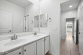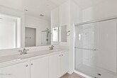 Discover this inviting home featuring a spacious great room filled with natural light. The modern kitchen boasts stainless steel appliances and a large island with granite countertops. The split floorplan offers privacy,with the primary suite separated from the other three bedrooms. The primary suite features vinyl floors,a large shower,dual vanity,private toilet room,linen closet,and a walk-in closet. The home includes a laundry room with a utility sink. Enjoy vinyl flooring in main living areas,tile in bathrooms and fresh paint and very little carpet. The large two-car garage has epoxy floors. Outside,the spacious backyard features a covered patio,artificial turf,and rocks for easy maintenance.