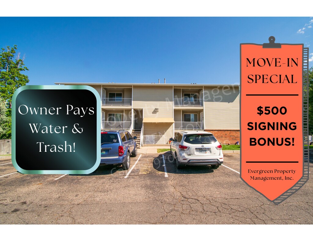 *** 360 Tour *** $500 SIGNING BONUS!!! Upon Signed Lease! Come see this great 3-bedroom 1.5-bathroom apartment in Greeley. Features of this third-floor unit include on-site coin-operated laundry, on-site parking, and a dishwasher. You’ll be right by the Greeley Lake West Reservoir, Sanborn Park, Centennial Park, shopping and dining at the Westlake Village Shopping Center, King Soopers, and just 8 minutes to UNC. Residents are responsible for putting electricity and gas into their name. Owner pays for water & trash. One small to medium-sized dog (under 40 lbs) will be considered with an additional $300 deposit, proof of spay/neuter, and a $35/month pet rent. All dogs must be over 1 year old. We only accept applications through our direct website: and we only schedule showings by phone at . Important Information: Note: We have several units at this property. Photos and 360 tours are for marketing purposes only and may not represent actual unit. Non-refundable $55 application fee. All residents 18 years of age and over must apply. - Security deposit is usually equal to 1 month's rent. - Visit our website for qualifications and exclusions. Apply online today, or call Evergreen Property Management, Inc at to schedule a showing! for our online application, requirements, and other available units! All applicants are responsible for verifying all information prior to signing a lease agreement. Evergreen Property Management, Inc. cannot verify the accuracy of property information listed on third party websites. Please visit our website to confirm property information and availability. Visit or call . (Measurements are for the purpose of marketing and may not be exact. If exact square footage is a concern, the property should be independently measured).