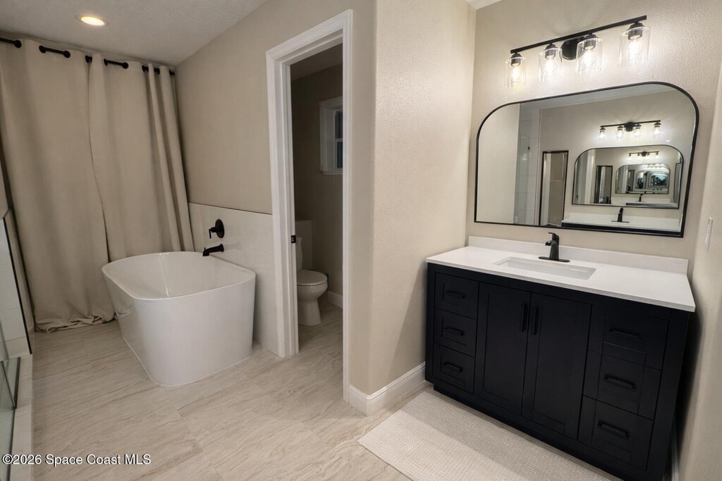 Beautiful 4-bedroom,3-bath lakefront home located in the highly desirable Viera East community. This spacious home features a thoughtfully designed split floor plan & a large family room perfect for entertaining. The primary suite offers tray ceilings,two walk-in closets,and French doors that open to the screened lanai. Completely renovated primary bathroom includes a oversized soaking tub,dual vanities,& a spacious layout designed for comfort and style. The kitchen is well appointed with Corian countertops,stainless steel appliances,a center island,and a double pantry,providing plenty of storage. The interior of the home has also been recently painted,giving it a fresh,move-in-ready feel. Bedrooms two & three share a convenient Jack-and-Jill bathroom,while the fourth bedroom features its own private bath that also functions as a cabana bath for easy pool access. Step outside to enjoy the beautiful screened lanai with a pool overlooking the lake. MLS # 1073172