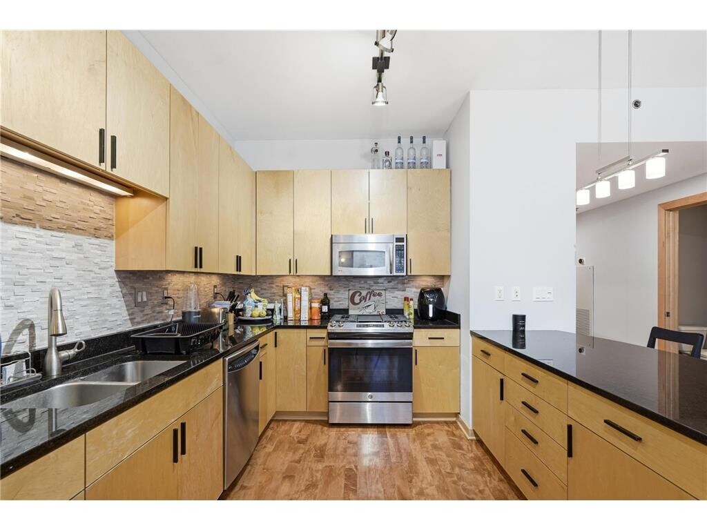Live in the heart of the Mill District in this spacious 2BR/2BA Bridgewater Lofts condo, complete with one heated indoor parking stall included in rent. The unit boasts real hardwood flooring, a gourmet kitchen with a large island, stainless steel appliances, granite countertops, and a gas range, plus an upgraded lighting package. Enjoy oversized windows, a large primary suite with a walkthrough closet to the bath, and a private balcony with gas grill hookup. Bridgewater amenities include professional on-site management, secure access, free indoor guest parking, first-floor retail, a rooftop pool, hot tub, and patio, a huge community room, and a fitness center. Included in rent: 1 Indoor heated parking stall(s), water/sewer/trash, gas, basic cable and internet; Tenant responsible for electricity. App Fee: $78. Admin Fee: $150; Move-in fee: $800. Deposit is one month's rent.