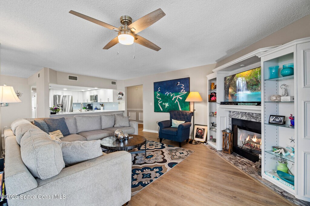 Live the ultimate coastal lifestyle in this beautifully updated 3-bedroom,2.5-bath condo located on the 4th floor of the desirable Wexford community in Melbourne Beach. This spacious residence offers incredible water views from every roomboth the river and the ocean! Enjoy peaceful evenings on the main balcony,accessible from the living room and primary suite,with sweeping views of the Indian River and spectacular sunsets. The second balcony off the guest bedrooms offers breathtaking sunrises and ocean views. New kitchen with quartz countertops and modern cabinetry,New LVP flooring,New electric hurricane shutters for peace of mind. Under-building parking and a private storage unit. As a resident of Wexford,you'll enjoy resort-style amenities: Heated riverfront pool,sauna,clubhouse,private beach accesswith a pavilion,showers,and a boardwalk to the sand. Other amenities include: bocci ball,pickle ball,tennis,& horse shoes. Steps from Publix,shopping,and restaurants!