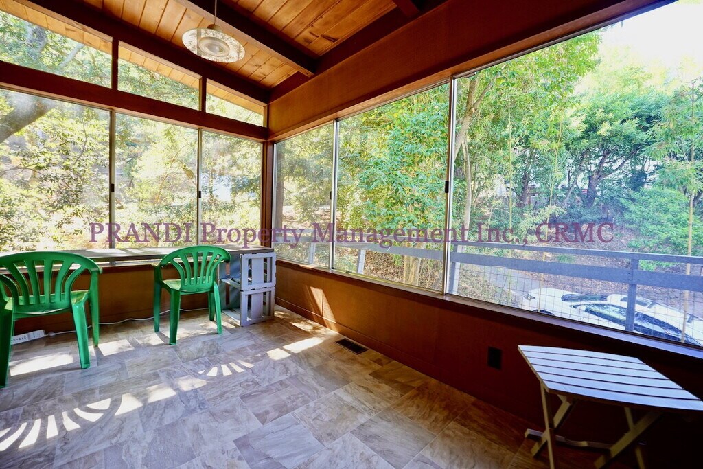 This charming hillside home has just been refreshed and is ready to go. Flexible floor plan with a sun room, family room and den. Lovely setting right along the creek. Additional features include, off street parking, wraparound deck and hardwood floors. Water, garbage and basic yard service included. Non-smoking property. This owner prefers no pets. If you would like to make an appointment to view this property, please call or text Gustavo at .