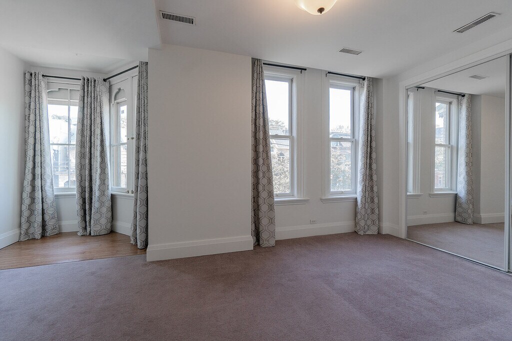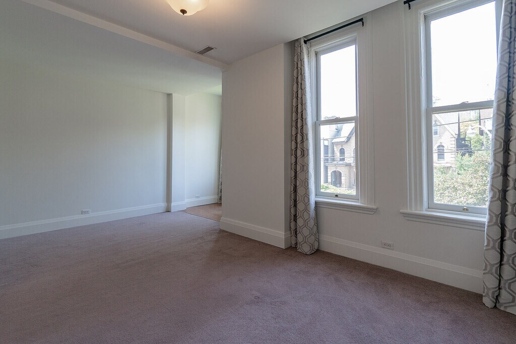 Cabbagetown, 2 Bedroom Apartment in Grand Victorian. This large unit has hardwood flooring, high baseboards and much of the charm and detail you would expect from a building of this era. Large principal rooms, with high ceilings and huge windows invite an abundance of natural light. The unit takes up the entire second floor and is extraordinarily spacious, including a large open concept living/dining room with windows overlooking the side and back yard. The primary bedroom has two large windows including a bay window overlooking the front yard and a large closet with mirrored doors. Plenty of storage space is available inside the unit. Entrance to the apartment is through a separate residential entrance at the rear of the property through a shared backyard area complete with deck and pergola. Public transit is right outside the door and the parks, trails, shops and restaurants of Cabbagetown are within walking distance. Pets are welcome and one car private parking is available for the unit.