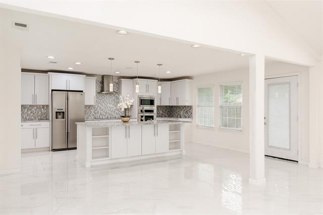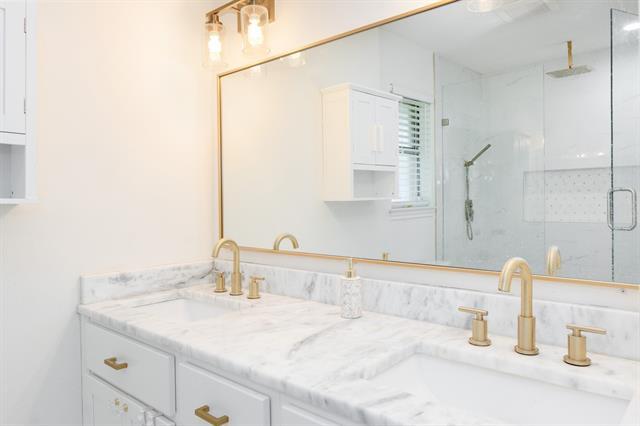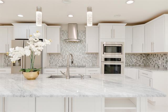 This beautifully updated Arlington residence blends modern finishes with everyday warmth, offering an open-concept layout and a kitchen that truly steals the show. Think rich flooring, sleek stainless steel appliances, an oversized island ready for celebratory moments + holiday spreads, and stunning marble counters that glow under soft evening light. The vaulted living room invites you to unwind by the cozy fireplace. The primary suite feels like a retreat, complete with a gorgeous custom walk in closet, and stunning walk-in shower framed in glass and gold finishes throughout. Both bathrooms carry the same elegant marble touches. No carpet anywhere! Located in the heart of Arlington, minutes from dining, shopping, entertainment, and just a short distance to nearby schools. This home offers convenience, comfort, and style in one welcoming package.
