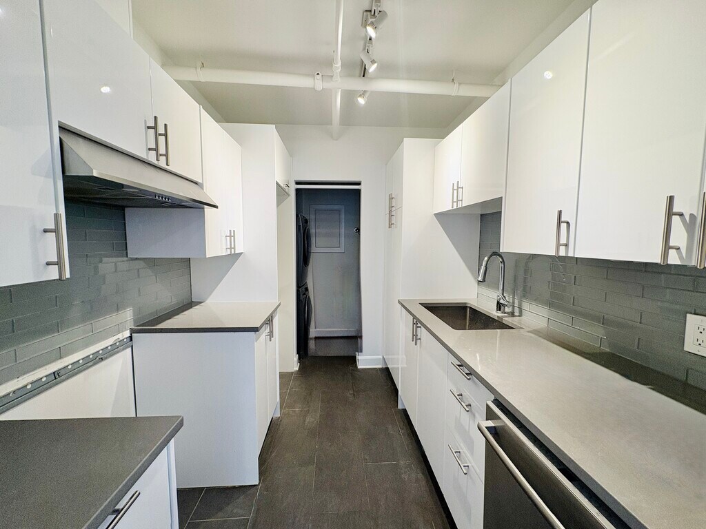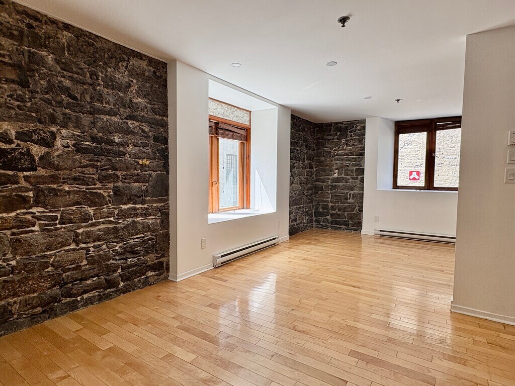 Charming loft style 2-bedroom apartment in the heart of Old Montreal with comfortable dining and living room space, new kitchen and 1 bathroom. The fridge, stove, dishwasher, washer/dryer and AC are included.
