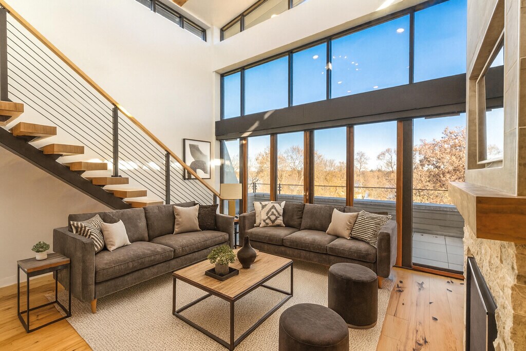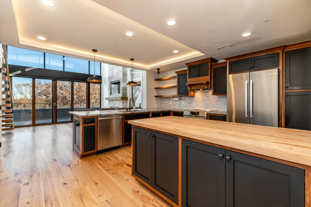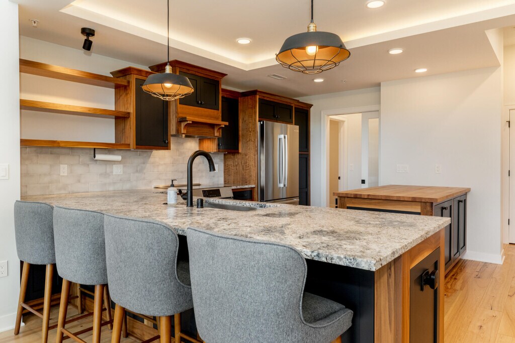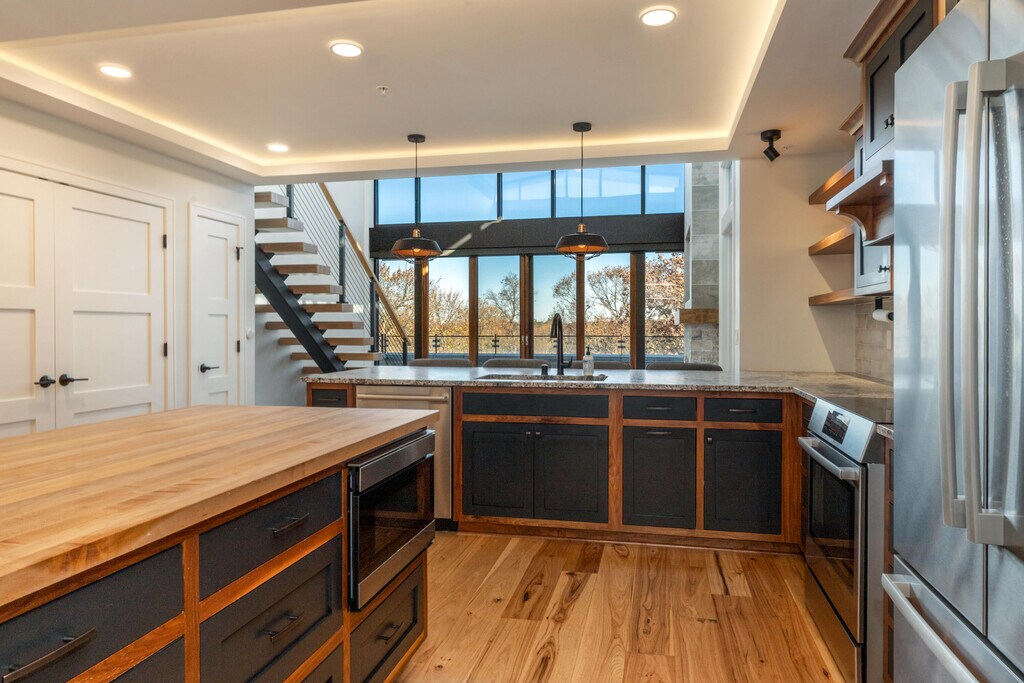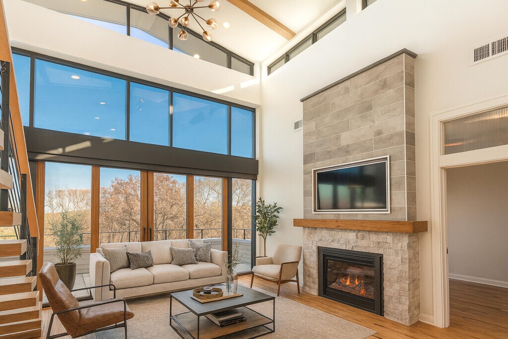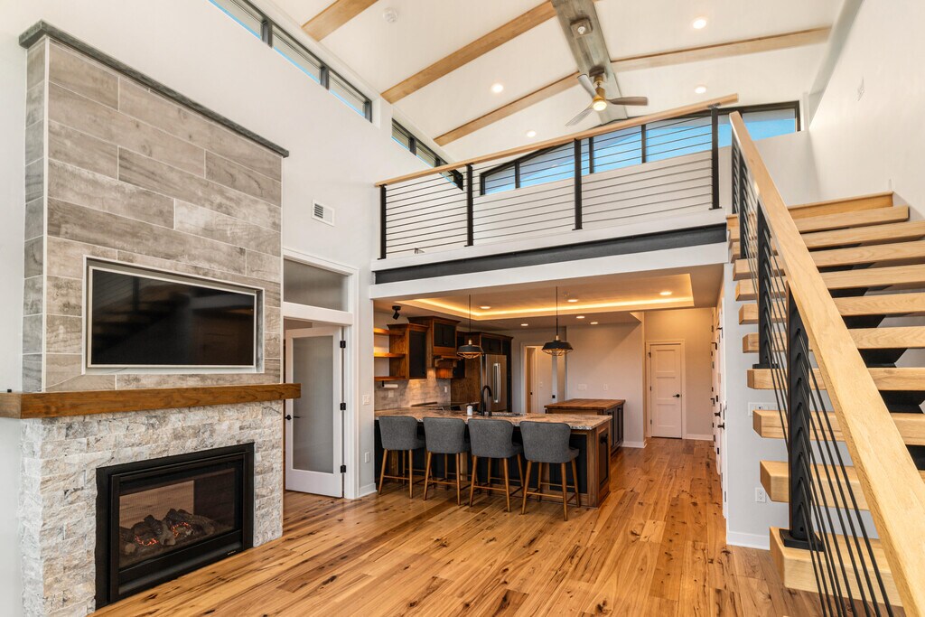 Modern luxury meets unbeatable amenities in this Penthouse stunner at Fowler Lake Village! Breathtaking views greet you at the door w/ floor to ceiling windows in a sun-soaked open concept. Soaring ceilings,Hickory wood floors,Gas FP,and impressive KIT fit for a Chef w/ breakfast bar seating,large island,and a dream layout for entertaining. Expansive,private balcony brings panoramic scenery year-round! Primary Suite boasts cozy Gas FP and spa-worthy bath w/ heated floors. 2 garage parking spaces,storage unit,in-unit laundry & free internet offer care-free condo living! Find small town charm steps to boutiques and dining amidst top of the line building amenities incl. Club Room,Exercise Room,Community Garden,and Sundeck. Come see what life at Fowler Lake Village is all about!