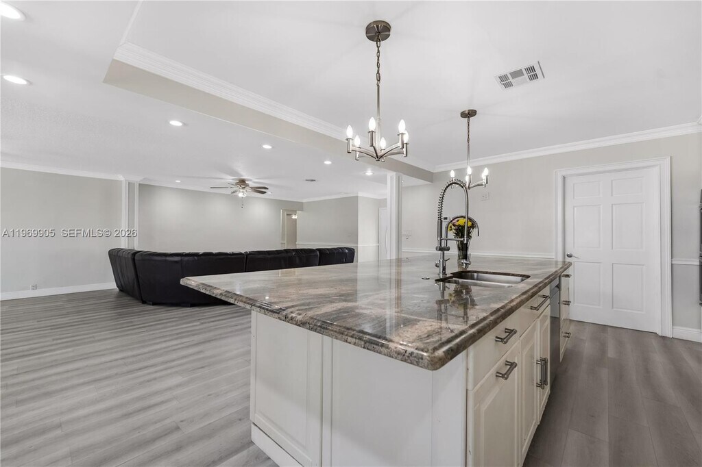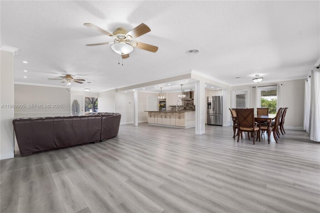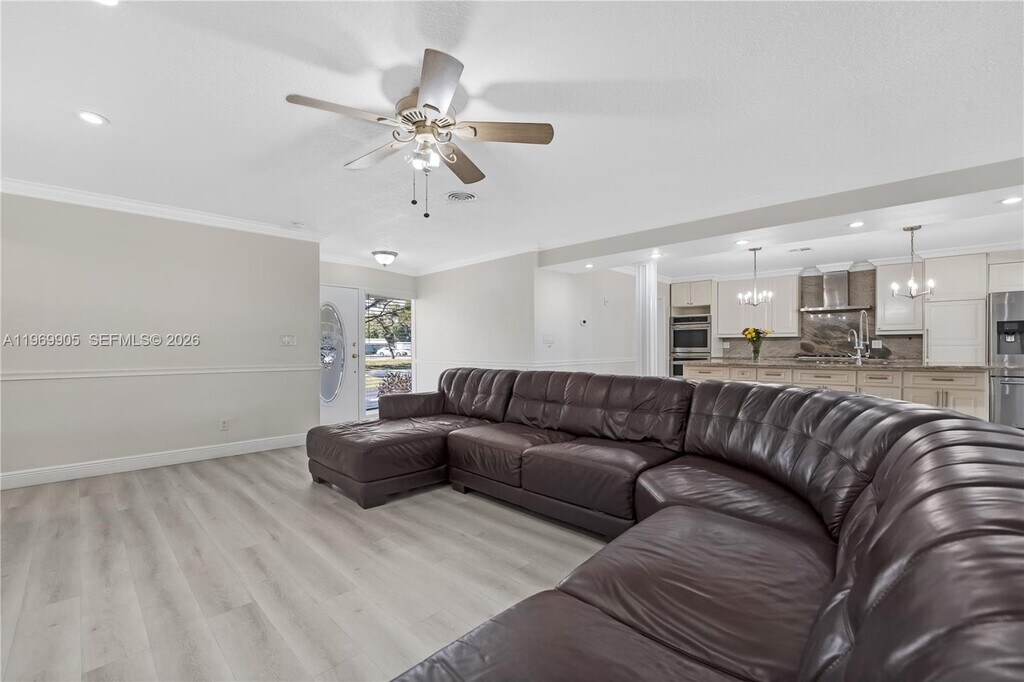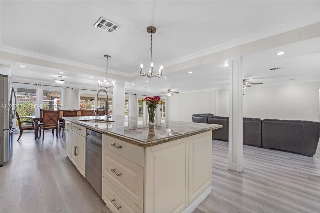 Impressive Spacious 2,814 SF residence on an oversized corner lot in the desirable Orangebrook Golf area of Hollywood. This bright split-level home offers an open layout designed for comfortable family living and entertaining. The expansive living and dining areas flow seamlessly into a stunning kitchen featuring a spectacular oversized marble island, abundant cabinetry, spacious pantry, gas cooktop with hood, double wall ovens, large modern refrigerator, and stainless steel appliances throughout. * A private in-law/guest suite with its own full bathroom and separate entrance provides flexibility for extended family, guests, or a home office. An additional room offers ideal space for a den or workspace. * Outdoor features include a screened-in pool, as well as expansive covered patio and porch areas that provide generous space for hosting family and friends, weekend BBQs, and outdoor gatherings, all framed by mature hedges that enhance privacy. The surrounding yard is thoughtfully designed for low-maintenance living. * The oversized driveway provides abundant parking space. Renovated bathrooms and new laminate flooring throughout complete this move-in ready home. * Located in a quiet, low-traffic neighborhood directly near the golf course, major highways, train station, shopping, dining, medical facilities, and approximately 15 minutes from the beach. An exceptional rental opportunity offering space, privacy, and a prime central location. An outstanding place to call home. MLS # A11969905