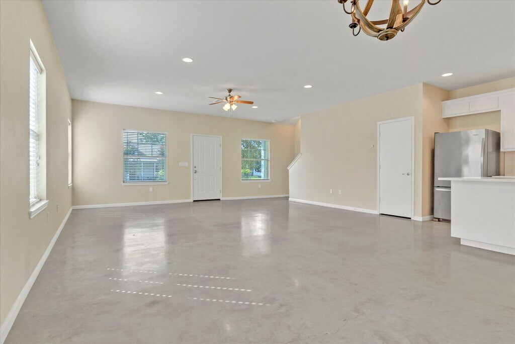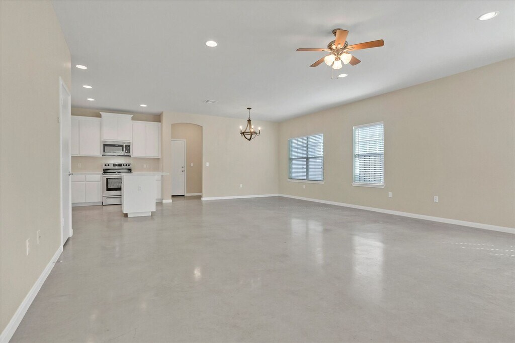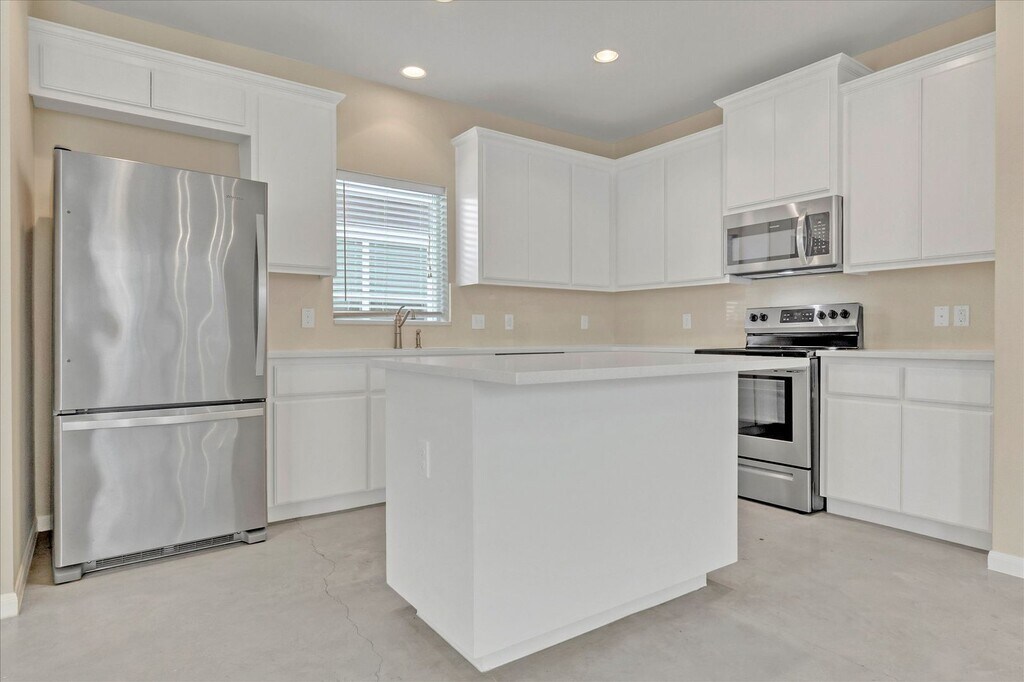 Welcome to the SPECTACULAR 3 Bedroom, 2 1/2 Bath home at 215 Grange St, Liberty Hill, TX 78642. This spacious 2098 sq ft, two-story home is a perfect blend of style and comfort. The open concept design is enhanced by natural lighting, recessed lighting, and stained concrete floors. The kitchen is a chef's dream with a convenient island, quartz countertops, and stainless steel appliances including a refrigerator, microwave, and stove/oven. The home also features a dedicated laundry room with washer/dryer connections. The three bedrooms are complemented by two full bathrooms and a half bath, with the master bath boasting a dual vanity and a shower/tub combo. Additional amenities include ceiling fans, window coverings, and central heating and cooling for year-round comfort. The home also offers a rear entry 2 car garage for secure parking. Experience the best of Liberty Hill living in this stunning home.