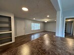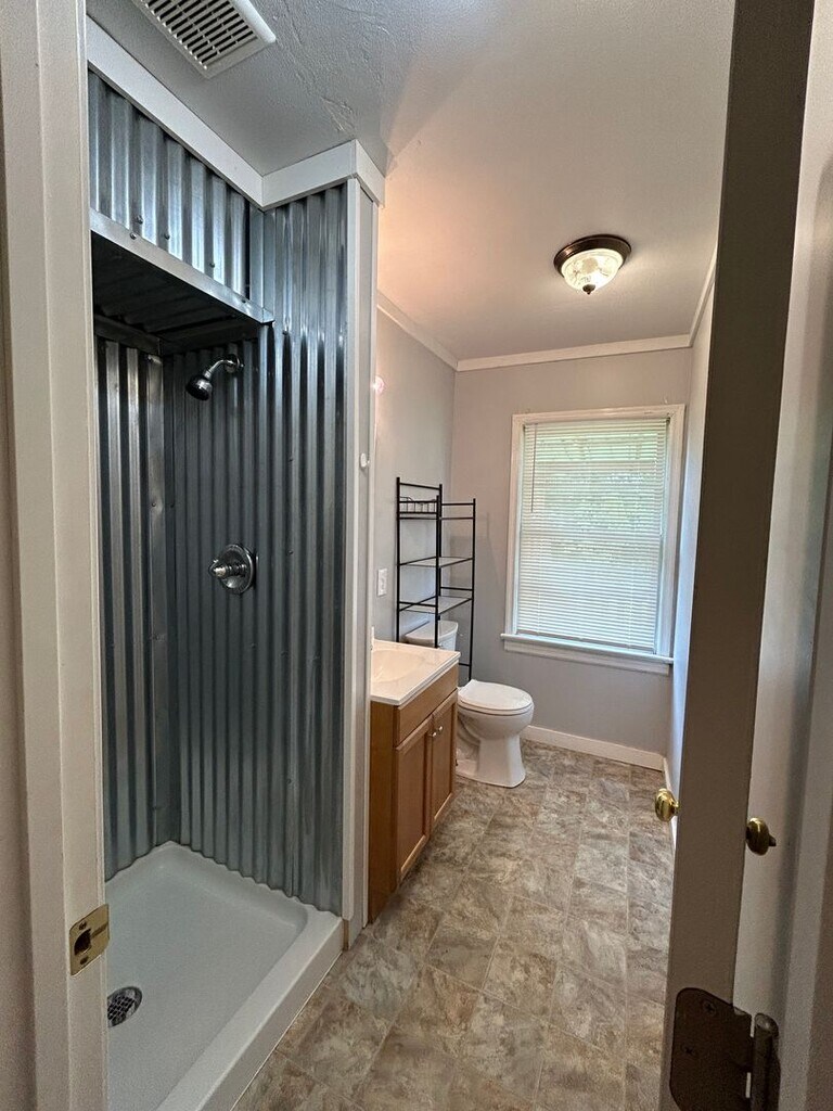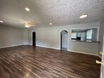 2 bedroom 2 bath home with large open concept living room and dining room. kitchen with range, fridge, and dishwasher. Laundry area. Hard surface flooring through out. one bath has a walk-in shower. Front Porch and large storage building. Window A/C and Space Heat. No Pets. No Section 8. Lawn Care provided.