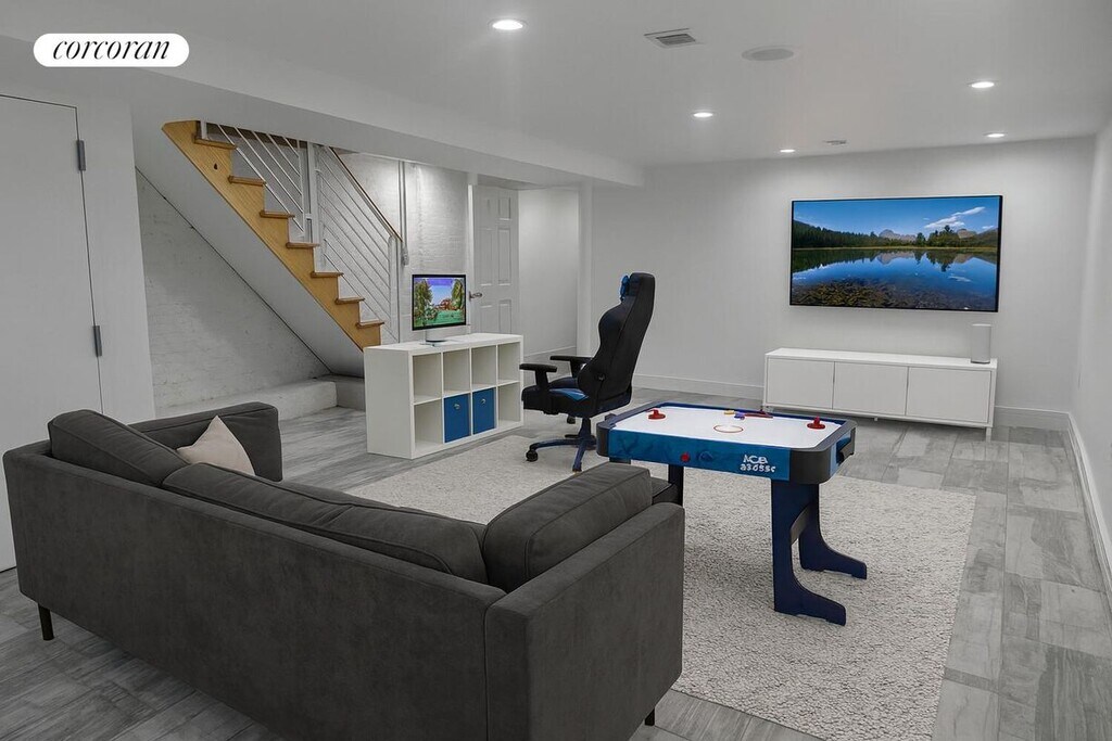 Welcome to 215 Lewis Avenue, Unit 1 – an exceptional duplex located within a charming townhouse!Boasting an impressive 2,000 square feet of living space, this versatile home offers a variety of living options to suit your needs.On the upper level, you’ll find a bright front room that can be used as a home office or additional bedroom, along with a spacious open-concept living area with a generously sized kitchen and dining space. The kitchen is a chef’s delight, offering abundant cabinetry, sleek granite countertops, a central island, and stainless steel appliances, including a dishwasher.The lower level features an additional bedroom, an extra-large recreation room, a full bathroom, and a convenient laundry area.Exclusive use of rear yard.Beautiful architectural finishes throughout the home include French doors, exposed brick walls, and a decorative fireplace, adding warmth and character to the space.Pets may be allowed upon approval.Upfront costs: One month rent + one month security + $25 application fee per applicant.