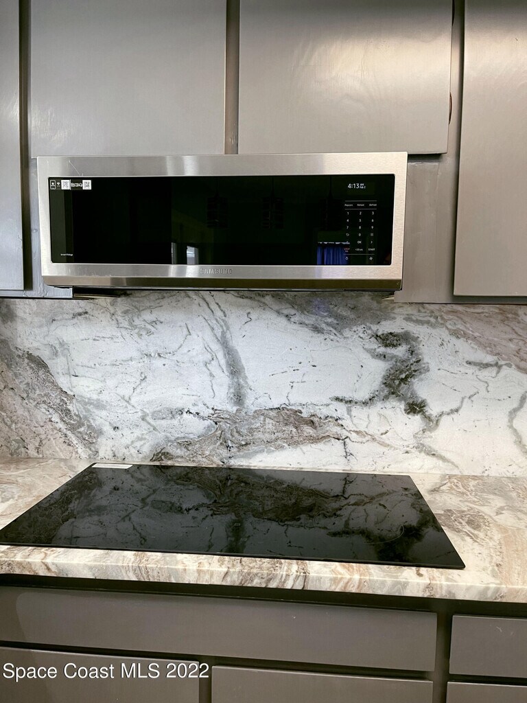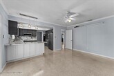 Walk to the beach from this beautifully renovated retro-style 4-bedroom,2-bath home offering over 2,100 sq ft of living space and a 2-car garage. A wide foyer welcomes you into an expansive front living area,alongside a formal dining room perfect for entertaining. The updated kitchen boasts newer granite countertops,a cooktop,and a built-in microwave,with a breakfast bar that opens to the family room and a convenient pass-through to the lanai. Double doors with built-in blinds lead to a large screened lanai--ideal for relaxing or hosting guests. The spacious primary suite features a king-sized layout,walk-in closet,and an additional 6-foot closet. The en-suite bathroom includes a long mirrored medicine cabinet,updated lighting,and a walk-in shower with built-in seating. Guest bedrooms share a charming retro hall bath equipped with updates. Additionally,interior laundry hook-ups,exterior door to fenced yard. New AC being installed. Cast iron plumbing has been re-lined. MLS # 1075278