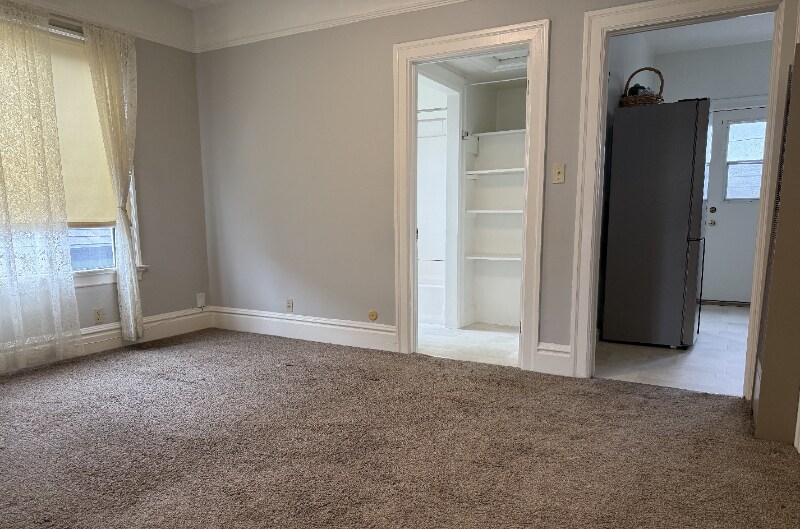 Property Id: 2301226 Welcome home to your new 2nd floor 2 BR, 1B apartment in this quiet Alameda four-plex located near the Main Street Ferry. As you enter your apartment, you are greeted by a sunny living room with high ceilings, picture rails and carpeted floors. Your updated kitchen has views of the Oakland Hills and a deck overseeing a shared back yard. Maybe you would like to grow vegetables in your garden? The pantry off the kitchen has your private washer and dryer (no coins!). Two sunny carpeted bedrooms are off the living room. Street-parking with limited shared tandem driveway parking. Garbage and water included. One year lease, then month to month. $2575 per month plus $7.00 monthly Alameda Rent program fee. Prospective tenant must have a credit score greater than 650 and pay for background check (approximately $55). Cats welcome. Sorry - no dogs please.