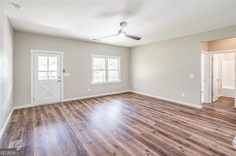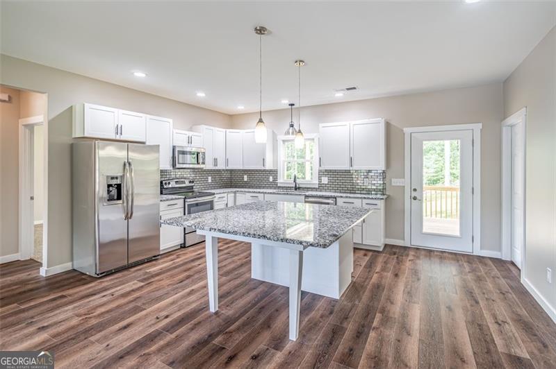 WELCOME TO THIS NEWLY COMPLETED CRAFTSMAN" HOME - LIGHT & BRIGHT. OPEN FLOOR PLAN TO PLEASE. COVERED PORCH WELCOMES YOU TO A LARGE GREAT ROOM & GLEAMING SS KITCHEN. FEATURES INCLUDE MICROWAVE & REFRIGERATOR, DISHWASHER, ELECTRIC STOVE, GRANITE COUNTERTOPS & TILE BACKSPLASH + OVERSIZED CENTER ISLAND & BREAKFAST BAR. 2" BLINDS IN FRONT ROOM & BEDROOMS. MBR WITH PRIVATE BATH & WALK-IN CLOSET. 2 ADDITIONAL BR'S + FULL HALF BATH. OVERSIZED LAUNDRY ROOM + UTILITY SINK. STEP OUT BACK TO LARGE COVERED DECK OVERLOOKING AN EXPANDED BACKYARD. 4+ PARKING IN FRONT. STEP DOWN TO CARPETED BASEMENT AREA - LOTS OF ROOM FOR HOBBIES, STORAGE & PARTIES! THIS HOUSE IS LOCATED AT THE END OF END OF A DEAD-END NEIGHBORHOOD STREET. EASY ACCESS TO 575 & MAJOR HIGHWAYS, SHOPPING, RESTAURANTS & PARKS NEARBY. OCCUPANCY AVAILABLE 11/15."