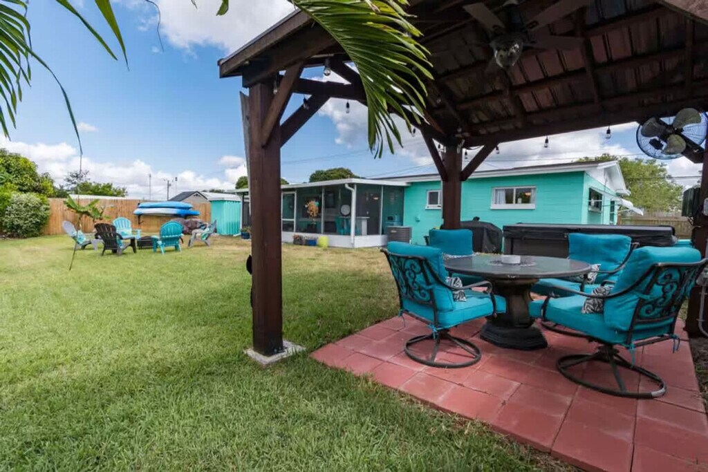 Welcome to this cute 3-bedroom, 2-bathroom home in the heart of Merritt Island! Feel at home in this peaceful 1,200 sq ft single-family retreat, located in a quiet, safe neighborhood. Inside, you’ll find updated appliances, including a gas stove, a fully equipped kitchen, and cozy coastal-inspired décor that makes the home feel warm and welcoming. The open layout is perfect for gathering, cooking, and relaxing after a day of adventure. Outside, unwind on the back patio or slip into the private hot tub. Guests can also take the kayaks out and explore the locally famous Sykes Creek right from the backyard! The fenced-in yard provides privacy and plenty of space for the family to relax. Dogs are allowed at this property, with a fee of $100 per pet, per stay. Merritt Island is located on Florida's largest island, which serves as the home of NASA's Kennedy Space Center. With Cocoa Beach just 10 minutes away and Kennedy Space Center nearby, you’ll never run out of things to do. Disney World and Universal Studios are only about an hour away. Wildlife lovers and birdwatchers can check out nearby Banana River, a 31-mile lagoon with salt marshes, oyster beds and mangrove swamps that are home to dolphins, manatees, blue herons and more. Quiet hours are between 10:00 PM and 8:00 AM. [SI]